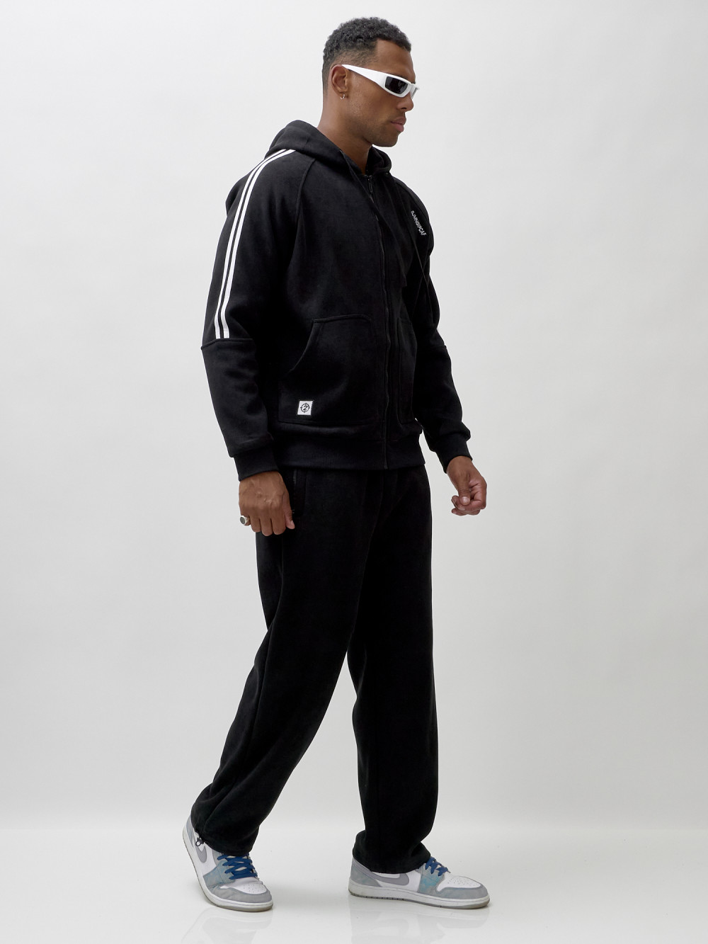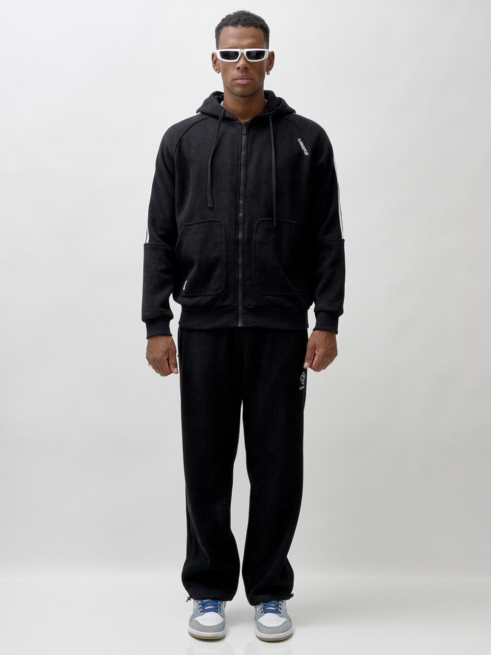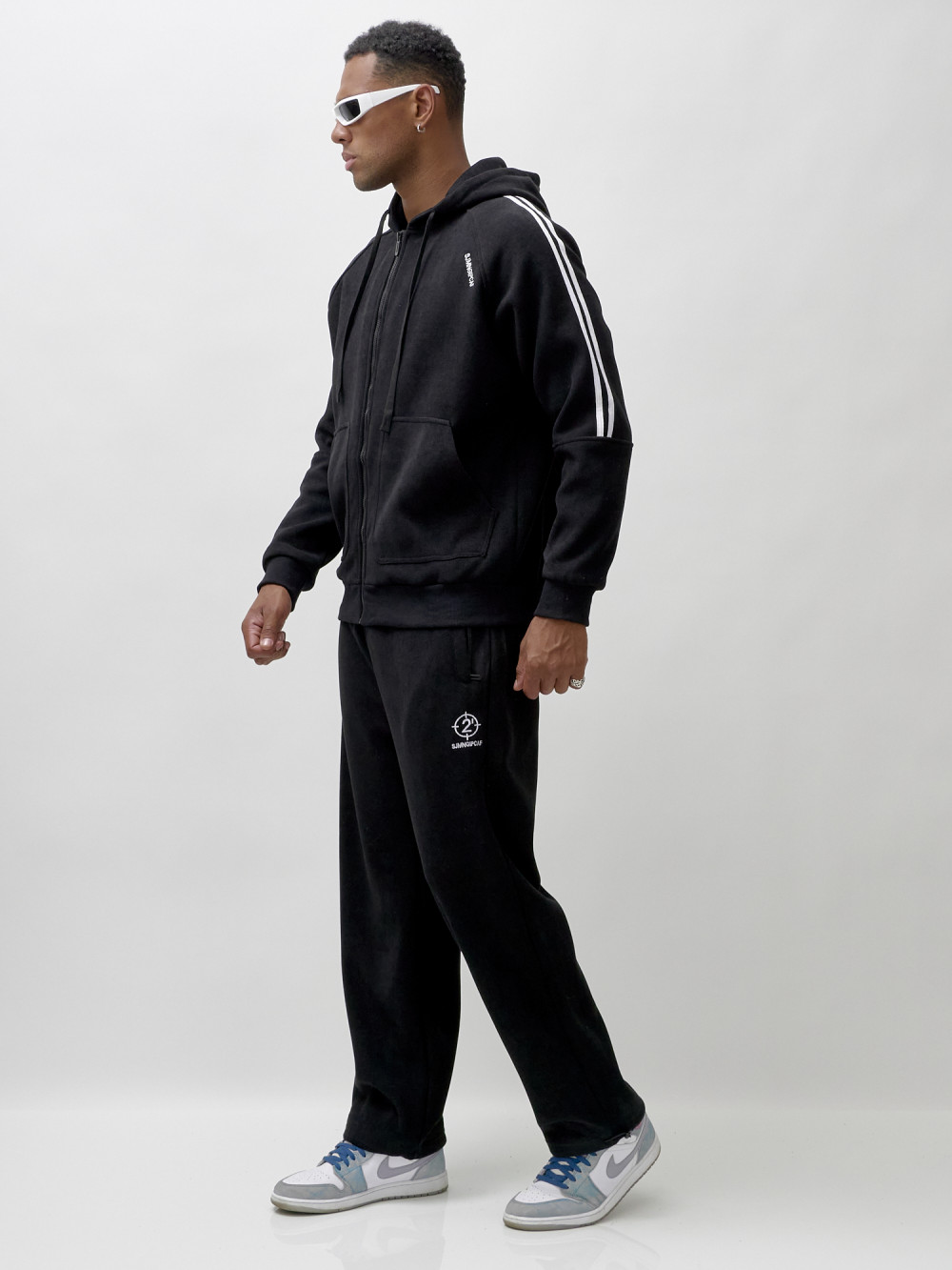 Спортивный костюм мужской демисезонный на флисе черного цвета 341Ch