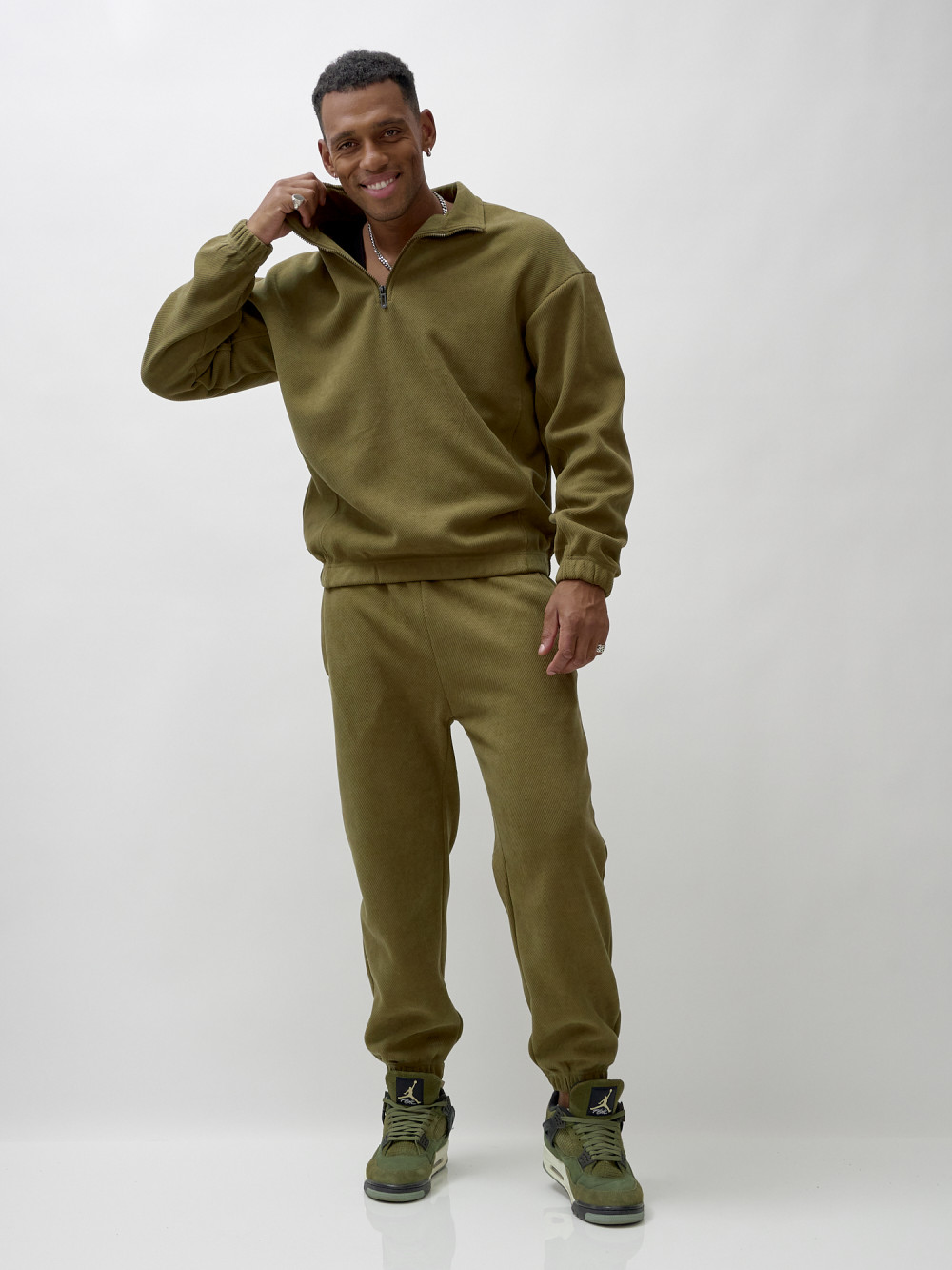 Спортивный костюм мужской демисезонный на флисе цвета хаки 331Kh