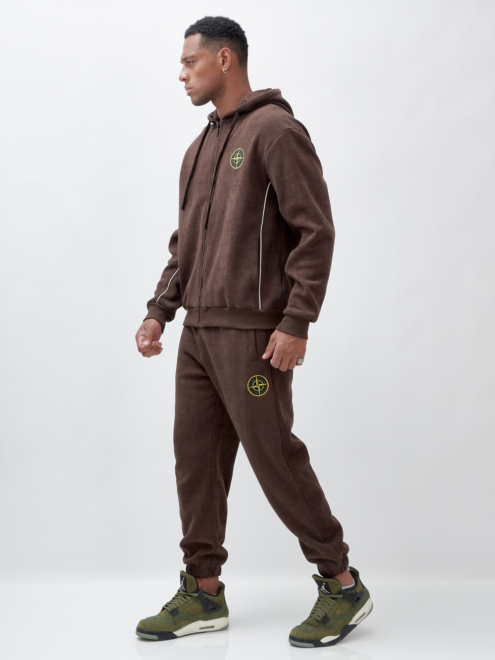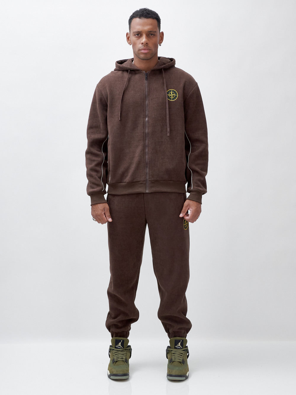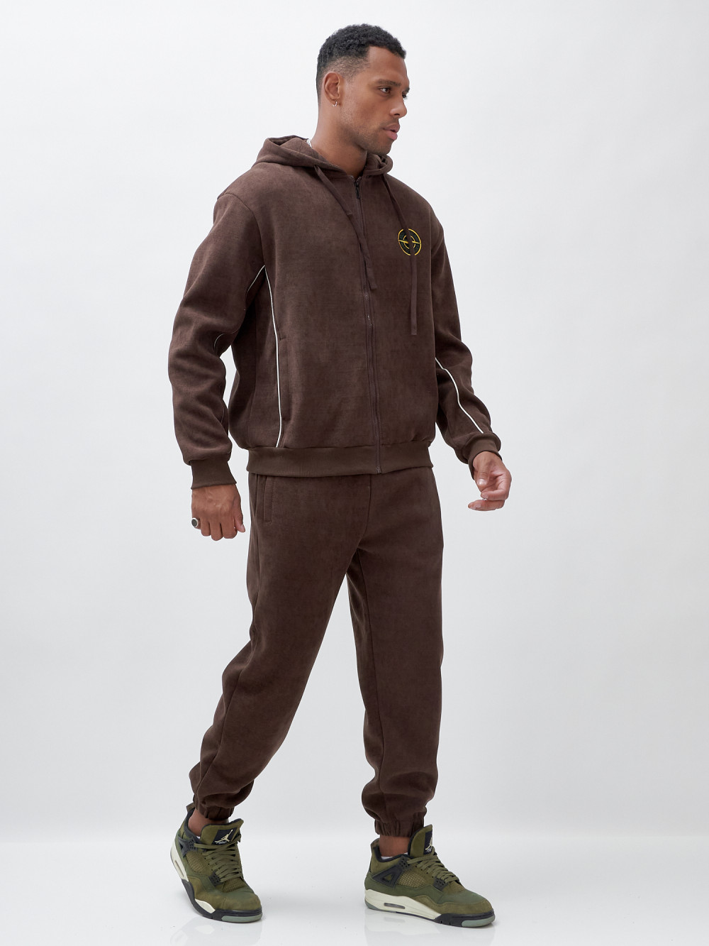 Спортивный костюм мужской демисезонный на флисе коричневого цвета 340K