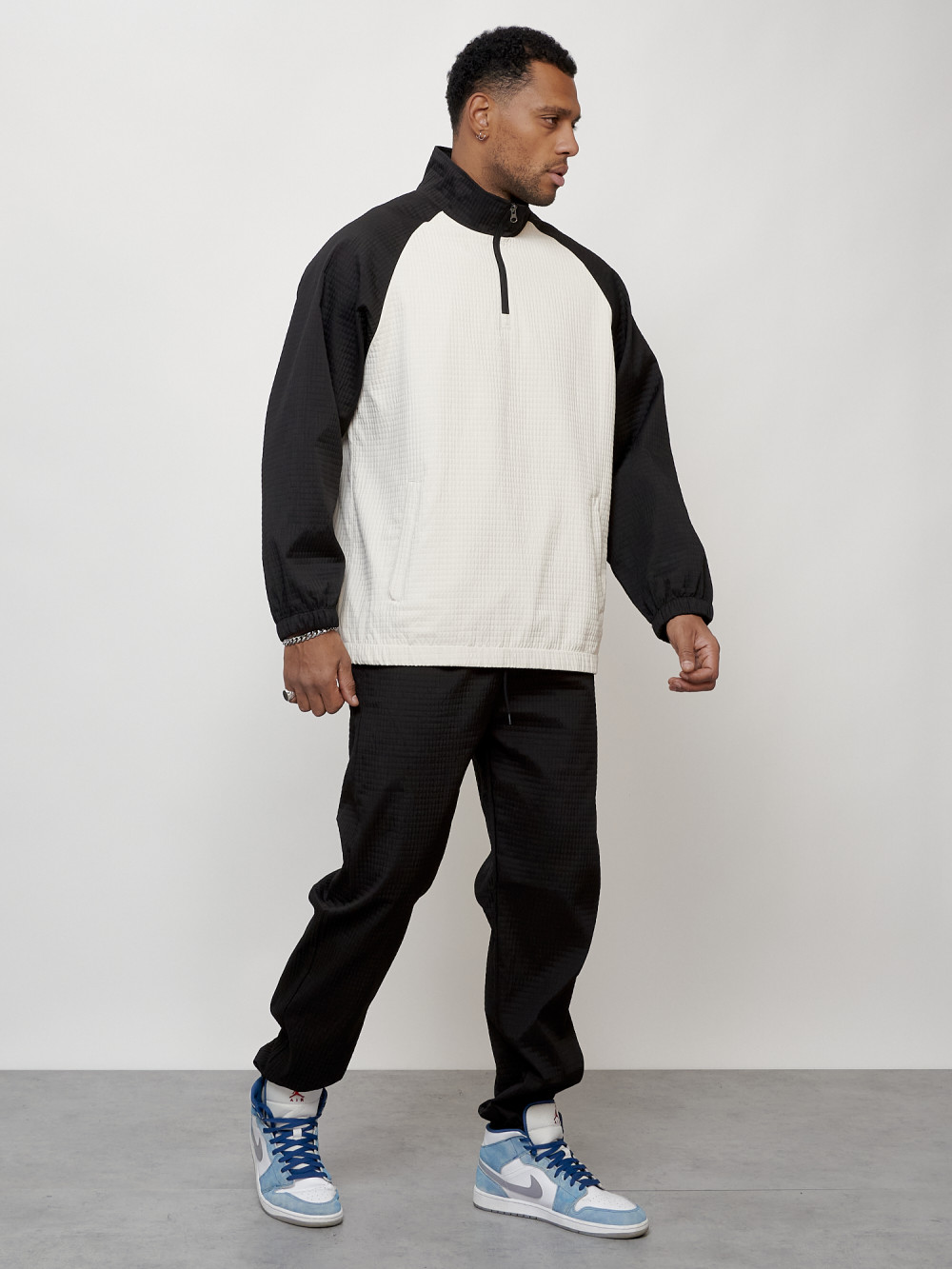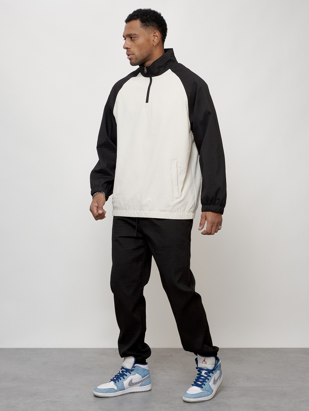 Мужской молодежный модный спортивный костюм двойка для активного отдыха и повседневного использования. Этот стильный и удобный мужской костюм состоит из двух частей: худи прямого кроя без капюшона с воротником стойкой, а также джоггеров из прочного полиэфирного волокна. Этот материал обеспечивает комфорт при носке, а также долговечность костюма. Кофта имеет прямой крой и длинные рукава с эластичными манжетами. Ветровка оснащена прорезными боковыми карманами на молнии. Джоггеры имеют среднюю посадку, эластичную резинку в талии и манжеты на лодыжках. Они идеально сочетаются с рубашкой и создают гармоничный образ.