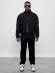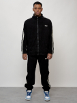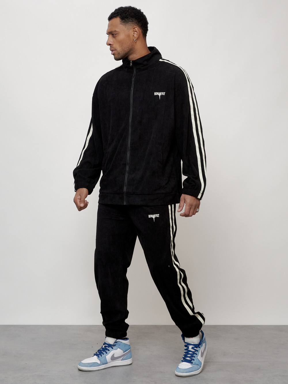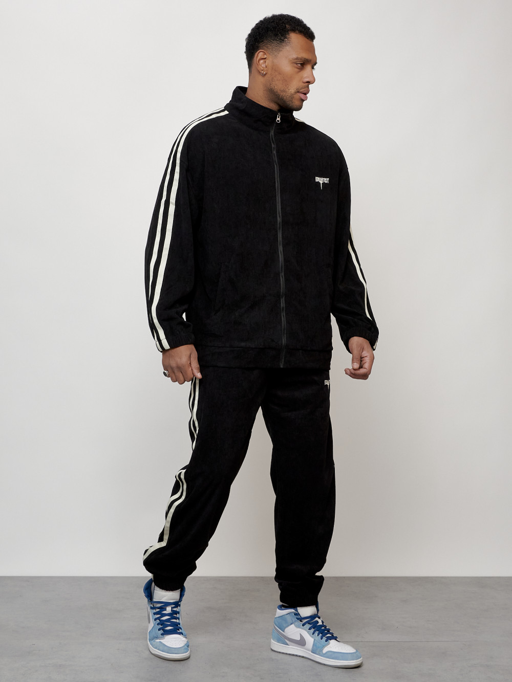 Спортивный костюм мужской модный из микровельвета черного цвета 15015Ch