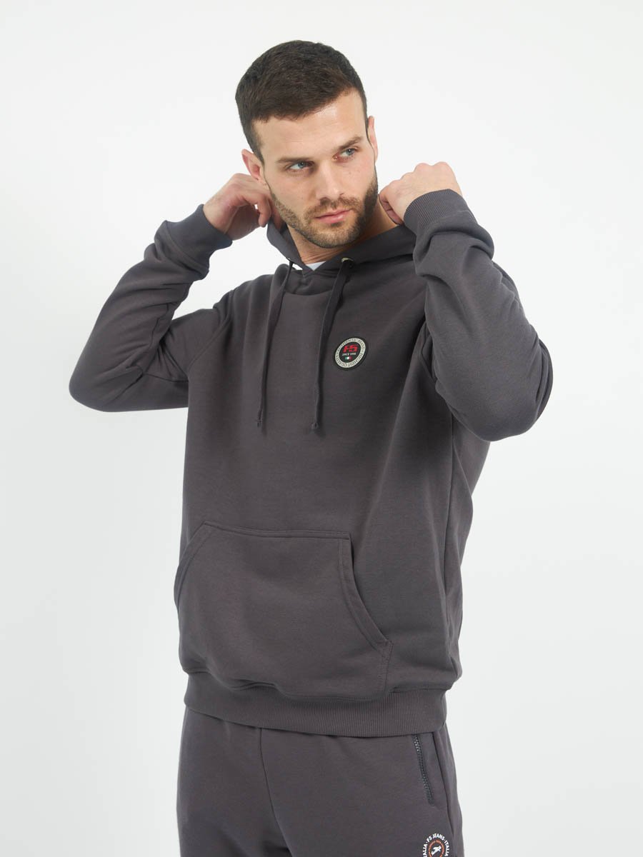 Классическая толстовка "Худи" выполнена из хлопкового полотна с добавлением полиэстера. Мягкая и приятная на ощупь, обладает хорошей гигроскопичностью,  позволяет коже дышать. Модель с капюшоном и длинными рукавами не сковывает движений,  обеспечивая комфорт. Объем капюшона регулируется при помощи шнура. Манжеты рукавов и низ толстовки оснащены эластичными резинками. Спереди толстовка дополнена карманом "кенгуру". 70%Хлопок, 30%Полиэстер