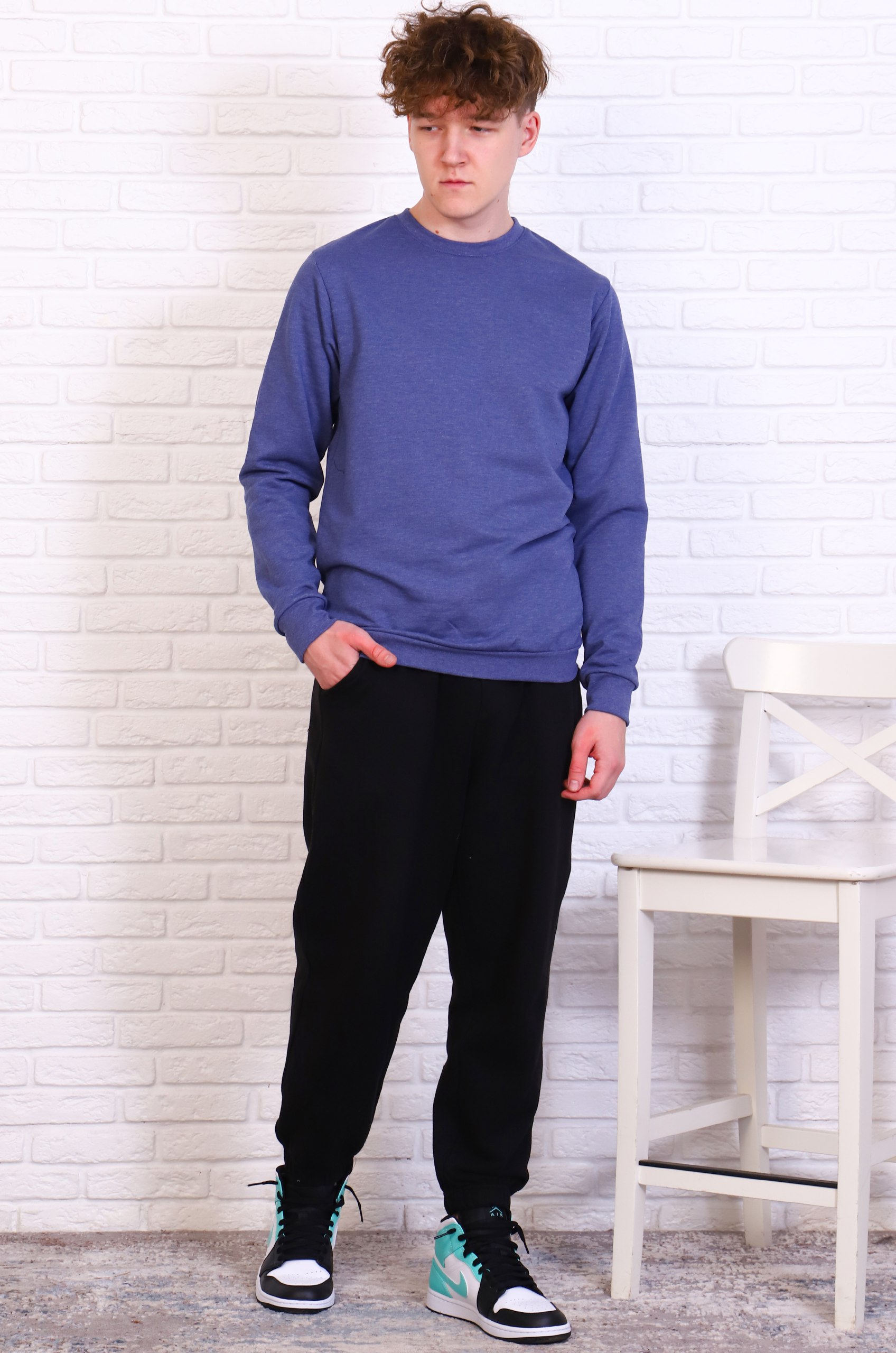 Стильная мужская толстовка-свитшот из облегчённого футера с начесом. Классический округлый вырез горловины, рукава и низ изделия на манжетах. Модель отлично смотрится и с джинсами, и с классическими брюками.