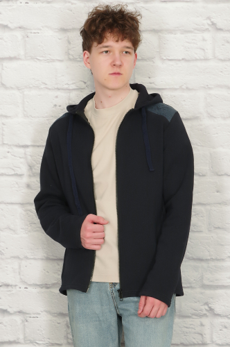 Вставка на плечах из набивного футера добавляет модели оригинальности и смотрится эффектно.