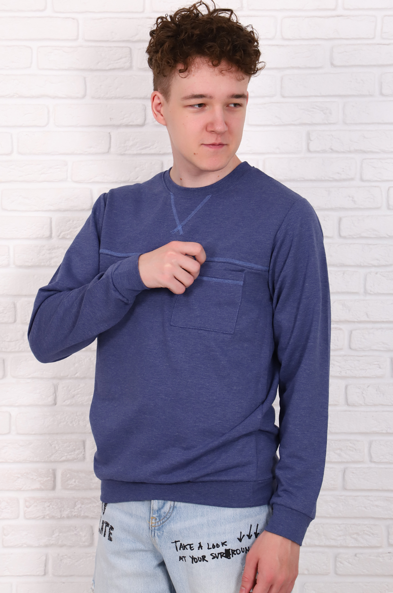 Стильная мужская толстовка с отрезной кокеткой и нагрудным накладным карманом. Горловина, манжеты на рукавах и низ изделия обработаны эластичной рибаной. Ткань -  облегчённый футер с начёсом, мягкая, приятная к телу. Модель отлично подходит и к джинсам и спортивным брюкам.