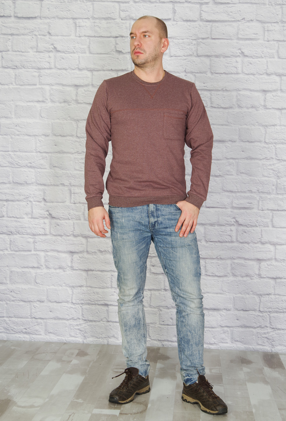 Стильная мужская толстовка с отрезной кокеткой и нагрудным накладным карманом. Горловина, манжеты на рукавах и низ изделия обработаны эластичной рибаной. Ткань -  облегчённый футер с начёсом, мягкая, приятная к телу. Модель отлично подходит и к джинсам и спортивным брюкам.