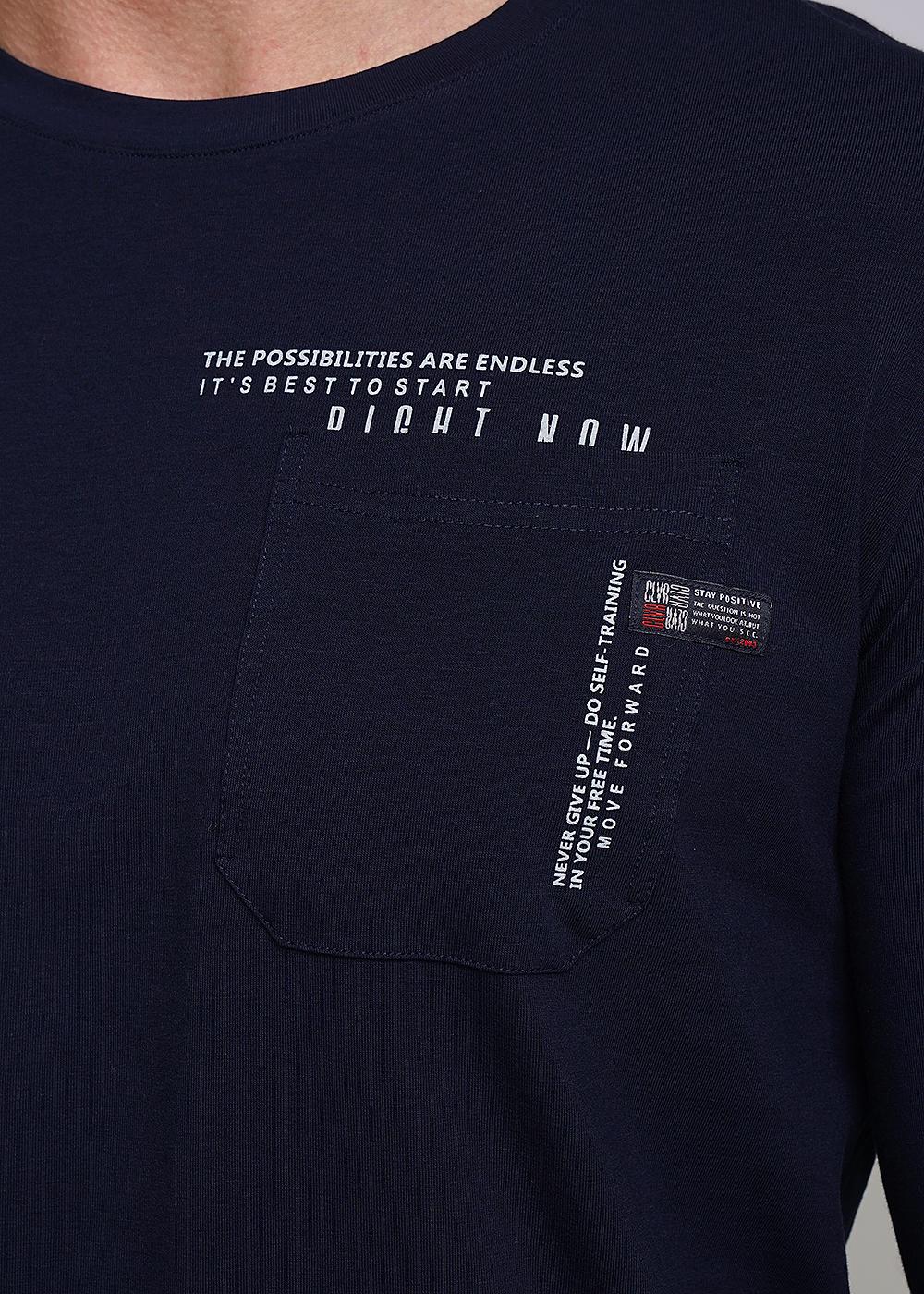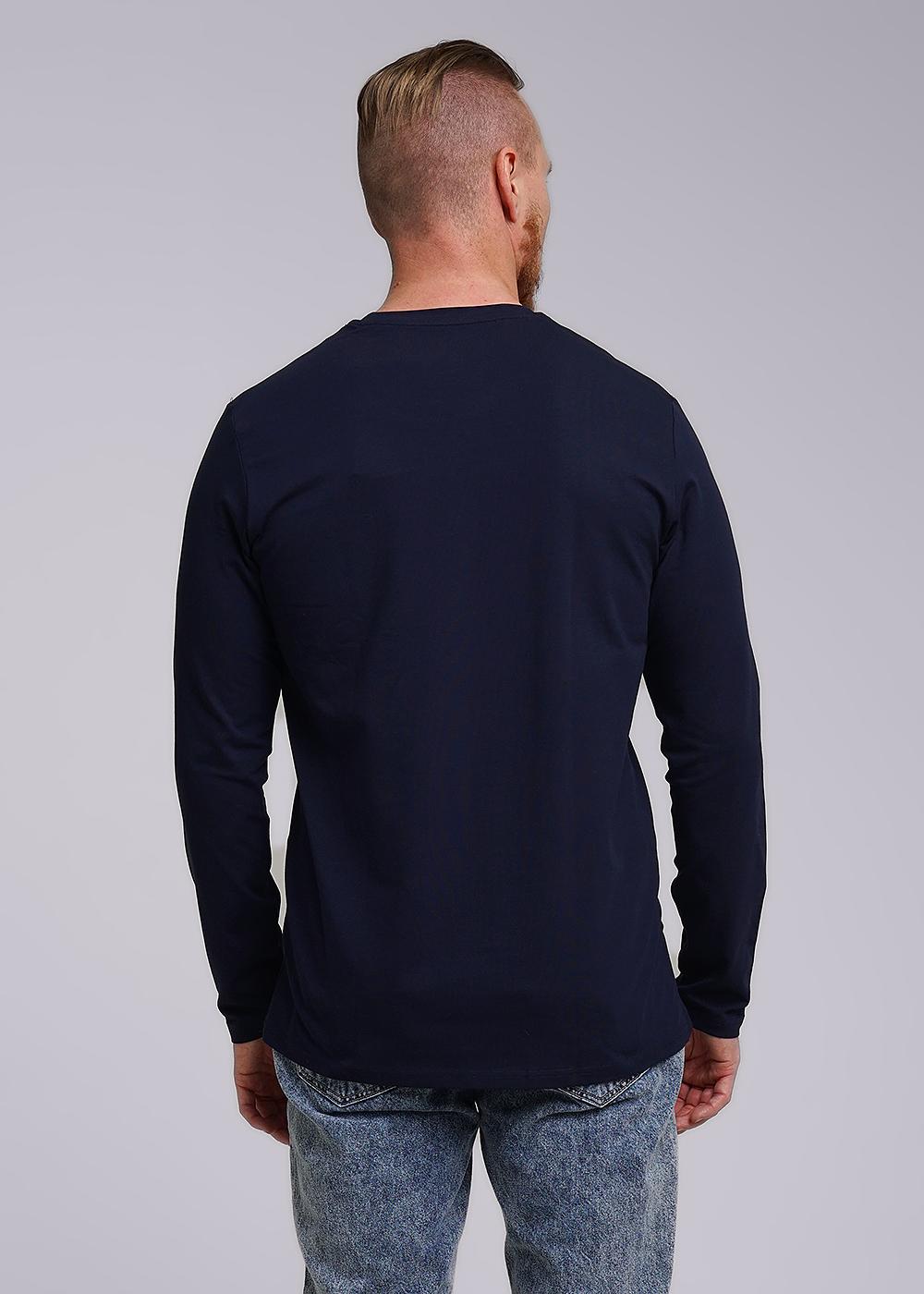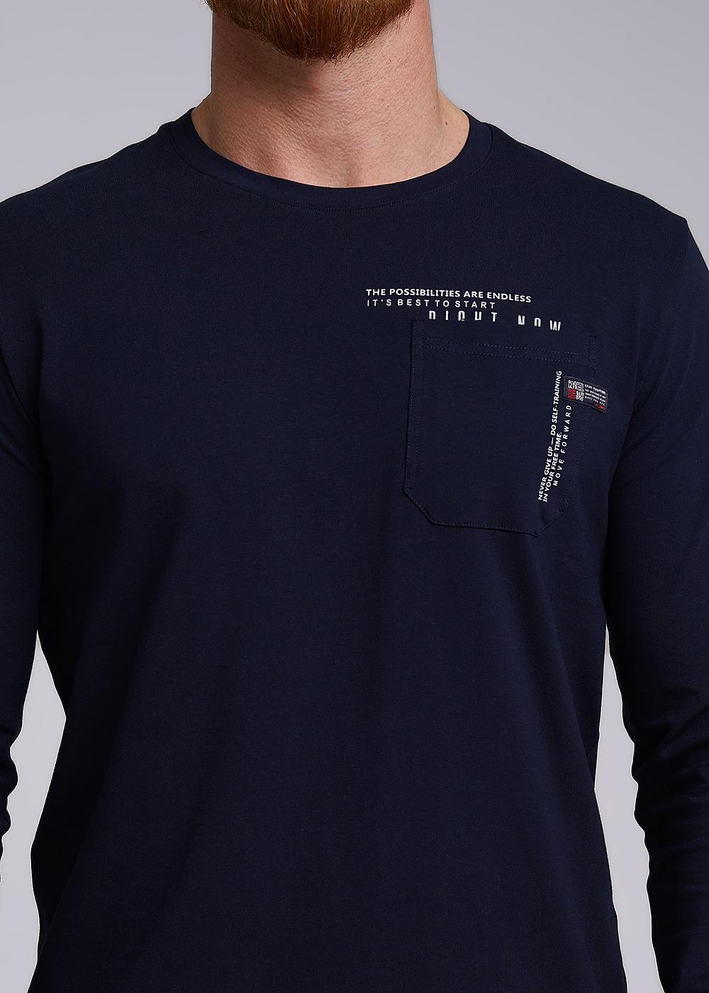 Лонгслив мужской с округлой горловиной и карманом. Прекрасно впишется в любой гардероб, станет отличным дополнением к брюкам или джинсам. Интересное звучание модели придает дизайнерская нашивка и принт.