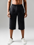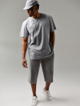 Костюм мужской, состоящий из футболки и шорт. Футболка - свободного покроя, короткими втачными рукавами и горловиной овальной формы, обработанной втачной планкой. По шву втачивания планки настрочена двойная отделочная строчка. Шорты - удлиненные, с карманами в боковых швах, на притачном поясе с эластичной тесьмой внутри.