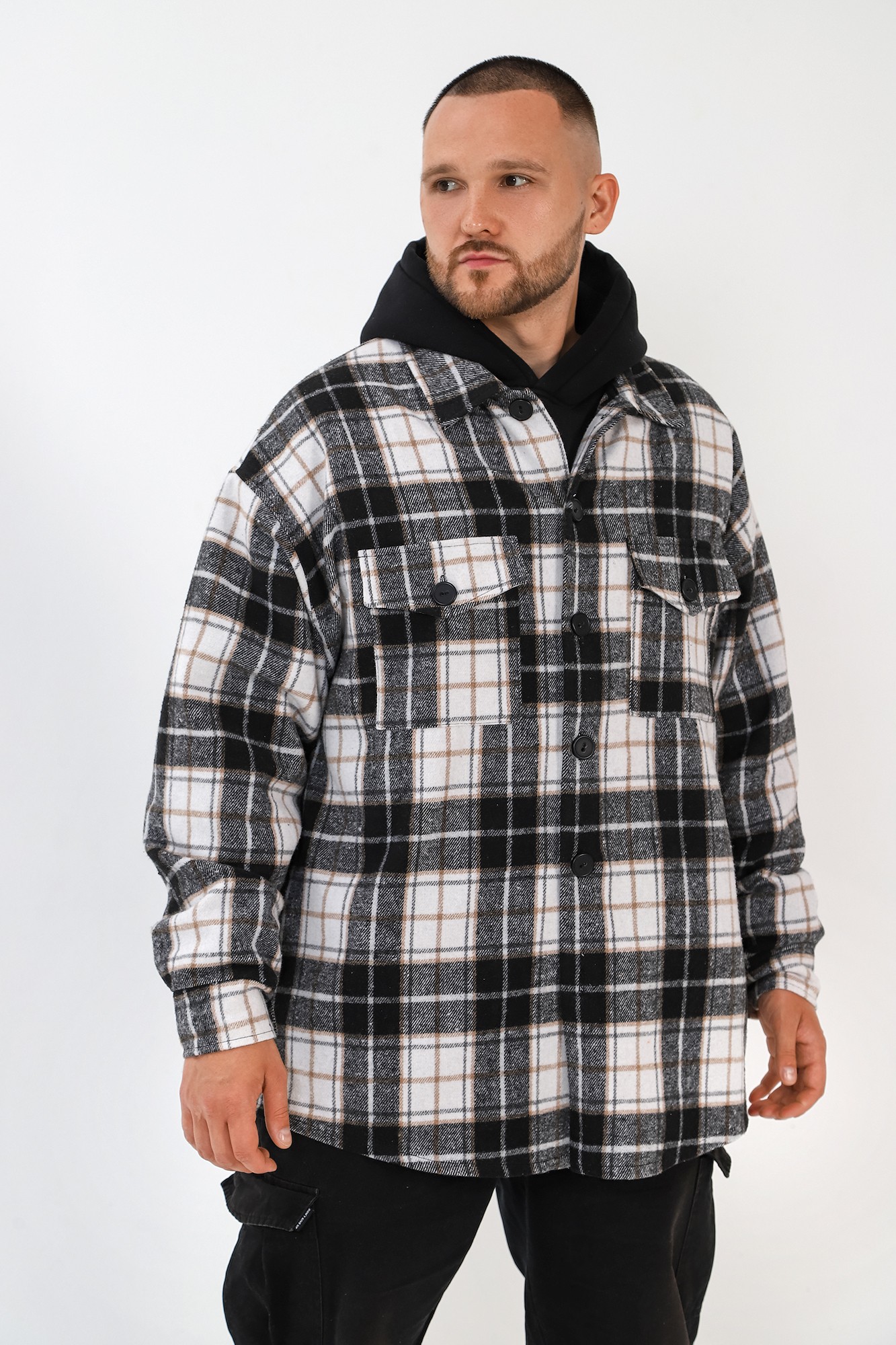 Рубашка мужская из тканого полотна с рисунком в крупную клетку, длинными втачными рукавами с разрезами на притачных манжетах, застегивающимися на обметанные петли и пуговицы, фигурной линией низа и стояче-отложным воротником. Полочки - с двумя нагрудными карманами и клапанами фигурной формы. Спинка - с притачной кокеткой, выкроенной по косой. В швах соединения манжет с рукавами обработаны по одной складочке. При эксплуатации изделия следует обратить внимание на то, что после ВТО и стирки материал дает усадку по ширине и длине.
