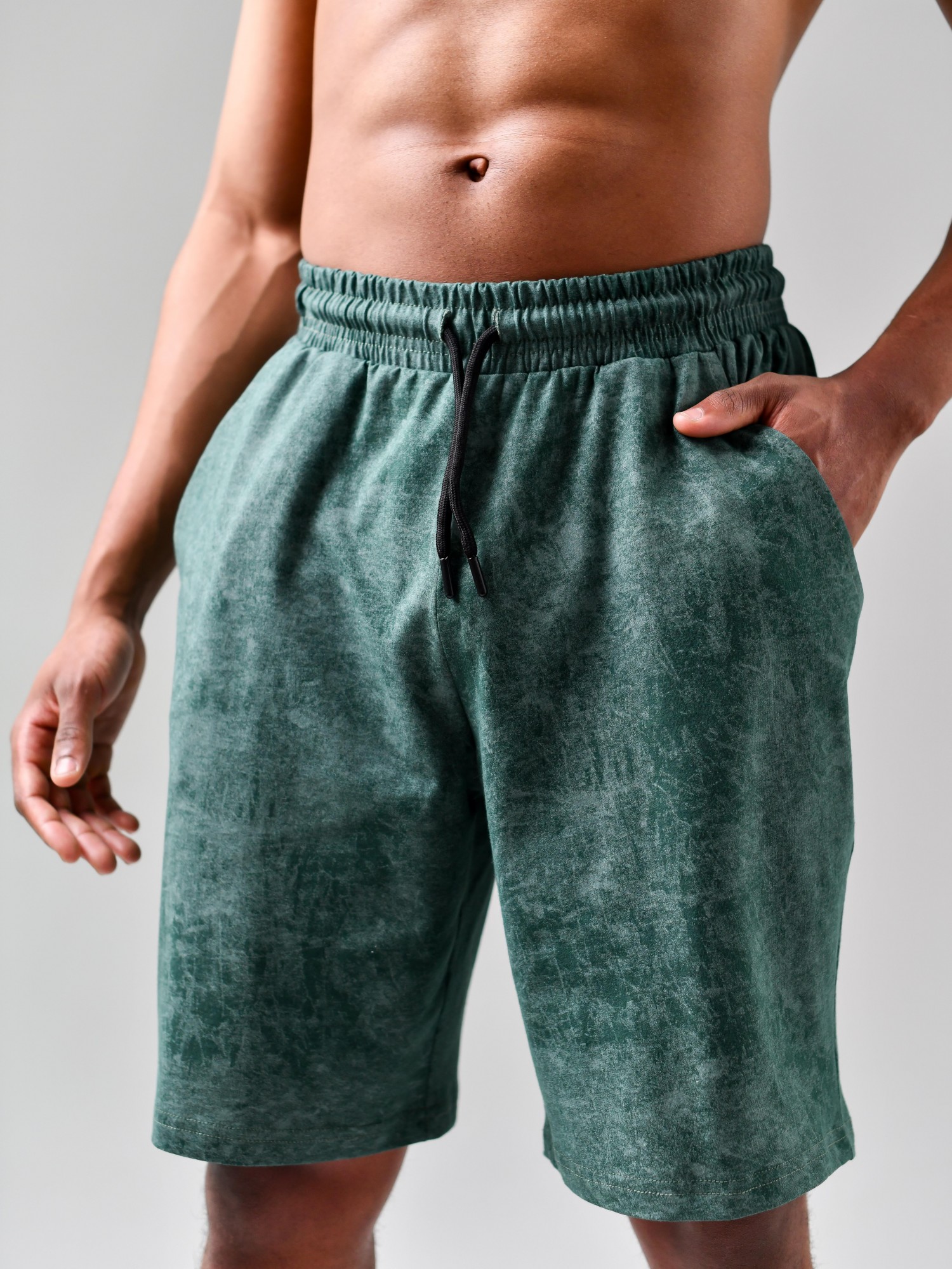 Мужские удлиненные шорты (бриджи) из трикотажного полотна с эффектом "варенки". Модель с боковыми карманами, на притачном поясе с отстроченной с эластичной тесьмой и шнуром в нем для регулирования степени прилегания.