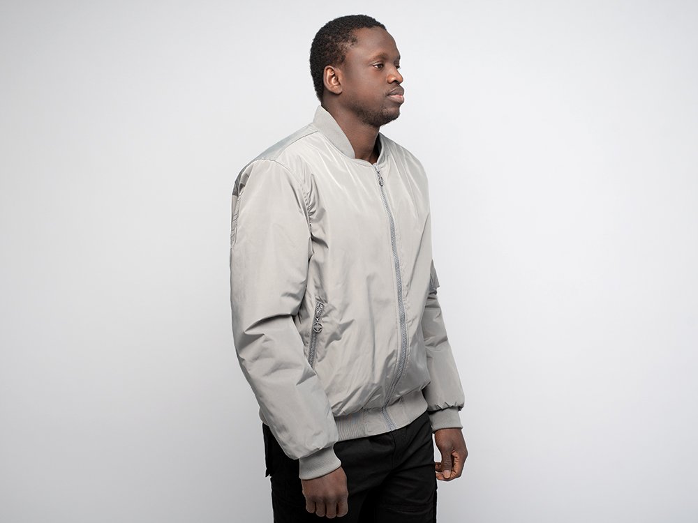 с легким утеплителем. Бомбер с круглой горловиной, застежкой на молнии. На одной стороне