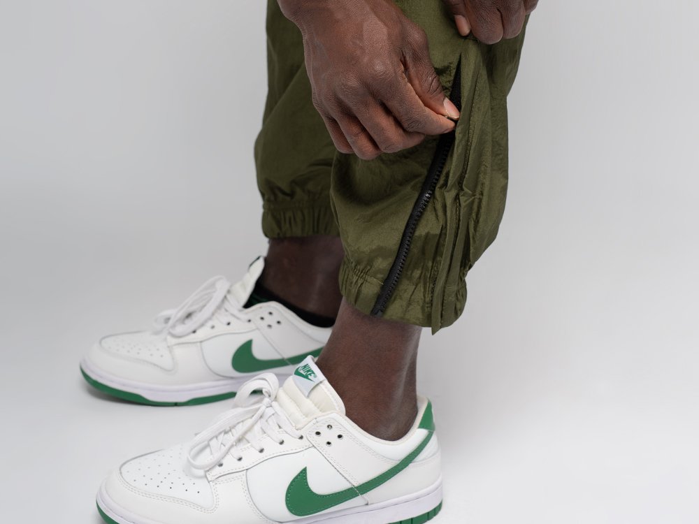 располагаются молнии, которые позволяют увеличить ширину нижней части брюк.