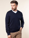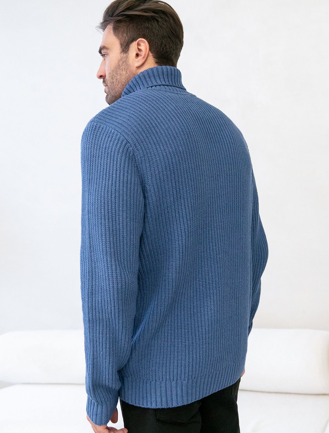 Свитер крупной фактурной вязки из мягкой пряжи из хлопка с акрилом U39.013 темно-голубой