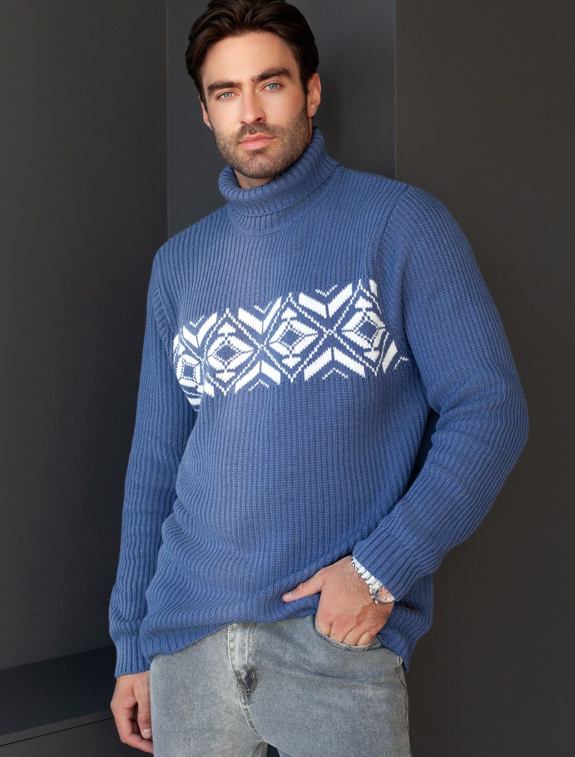 Свитер крупной фактурной вязки выполнен из мягкой хлопковой пряжи с акрилом. Теплая фактура изделия подчеркнута скандинавским узором. Длинный ворот защитит от ветреной погоды и поможет собрать, уютный комплект в расслабленном стиле в осенне-зимний период. Не препятствует циркуляции воздуха, но при этом хорошо сохраняет тепло и не колется, поэтому свитер комфортно носить даже на голое тело. Модель дополнена фирменным логотипом бренда.