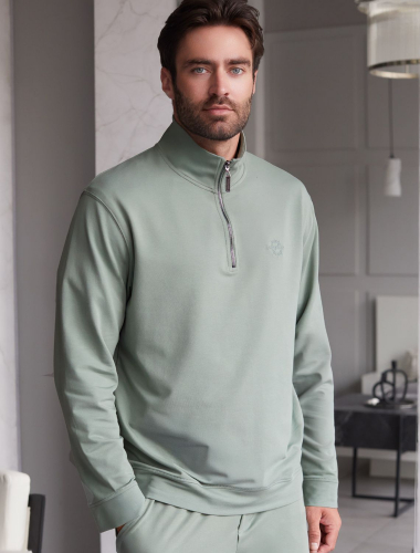 Свитшот с воротом стойкой на молнии из эластичного футера двухнитки U49.066 св.оливковый