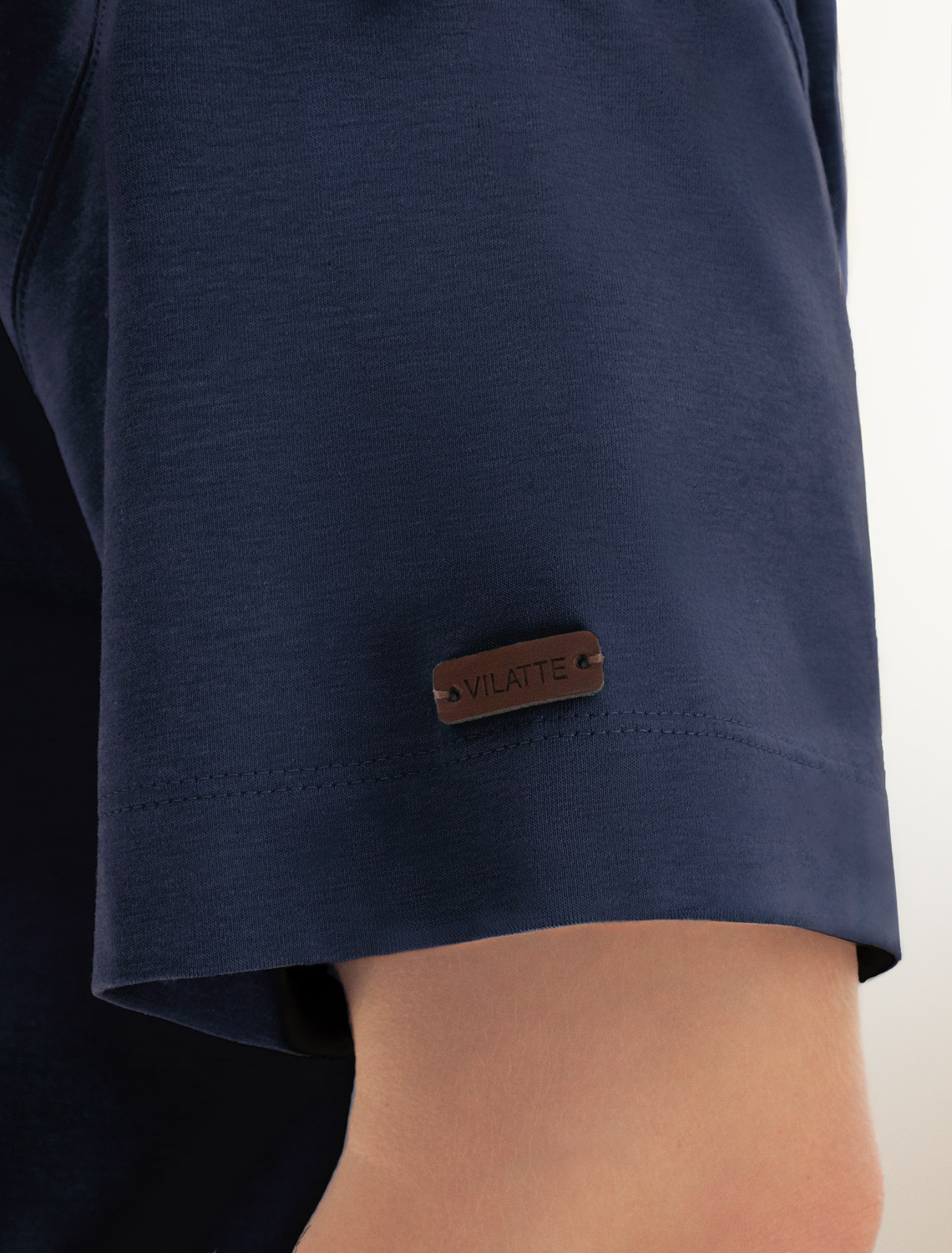 Перевод принта: Explore the great outdoors - исследуй мир. Футболка свободного кроя выполнена из премиального хлопка. Авторский принт нанесен красками с устойчивым покрытием. Благодаря эластану, носить изделие очень комфортно, и оно сохранит свой безупречный вид в течение долгого времени. На рукаве нашивка из эко-кожи с логотипом бренда. т.синий_explore геометрия