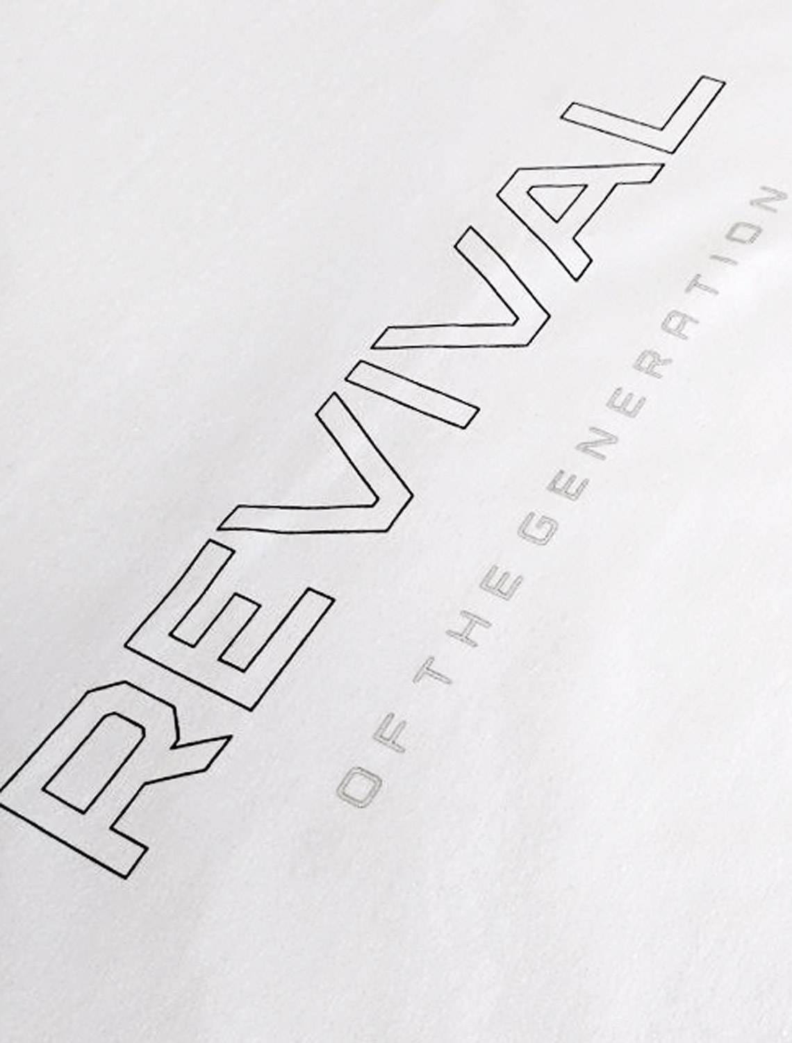 Перевод принта: Revival of the generation - возрождение поколения. Футболка свободного кроя выполнена из премиального хлопка. Авторский принт нанесен красками с устойчивым покрытием. Благодаря эластану, носить изделие очень комфортно, и оно сохранит свой безупречный вид в течение долгого времени. На рукаве нашивка из эко-кожи с логотипом бренда. белый_revival