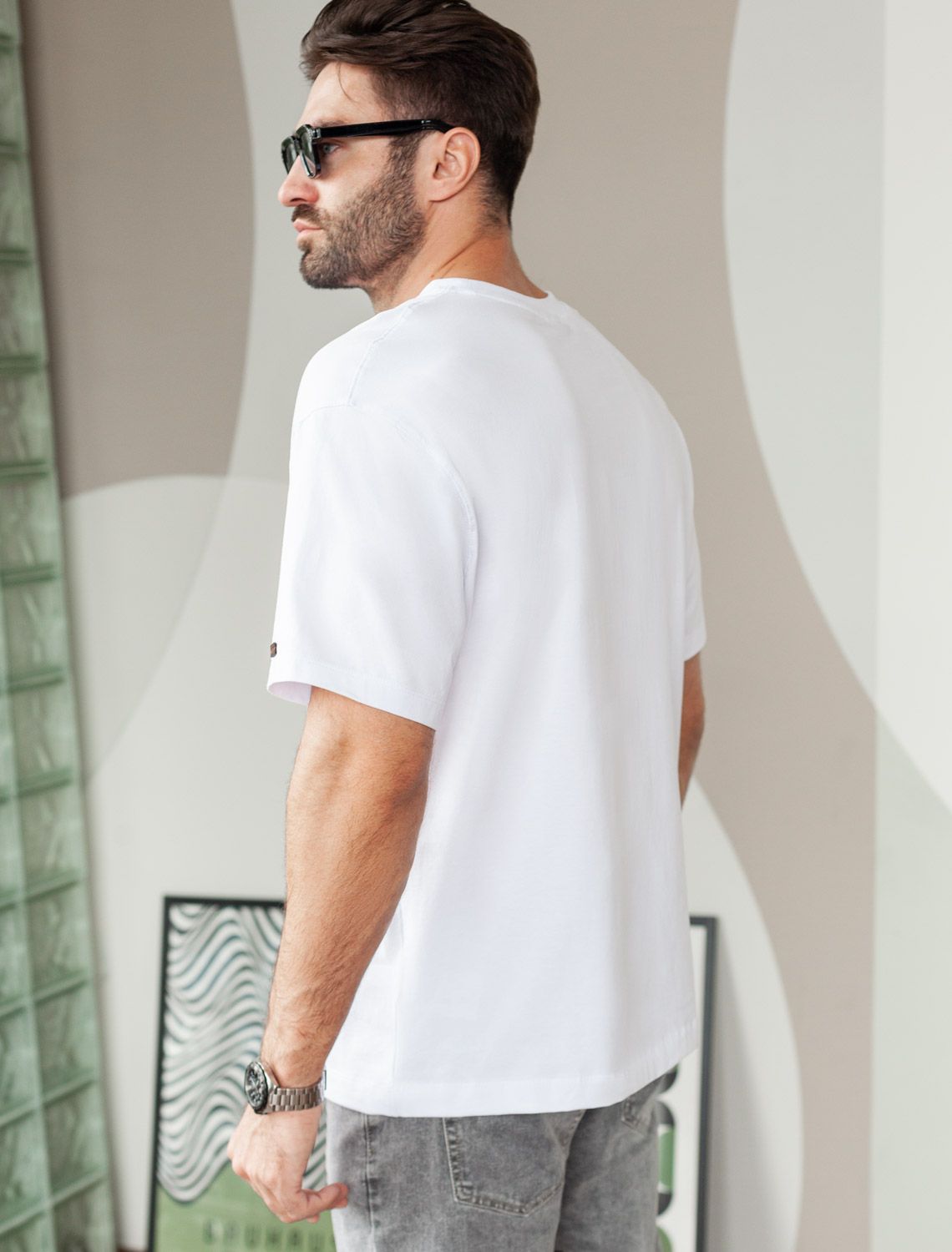 Свободная футболка с авторским принтом U49.048 белый_explore геометрия