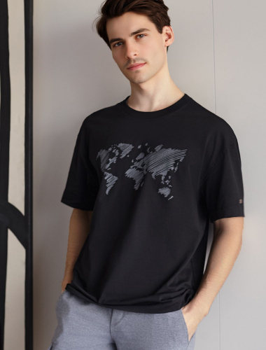 Свободная футболка с авторским принтом U49.048 черный_карта