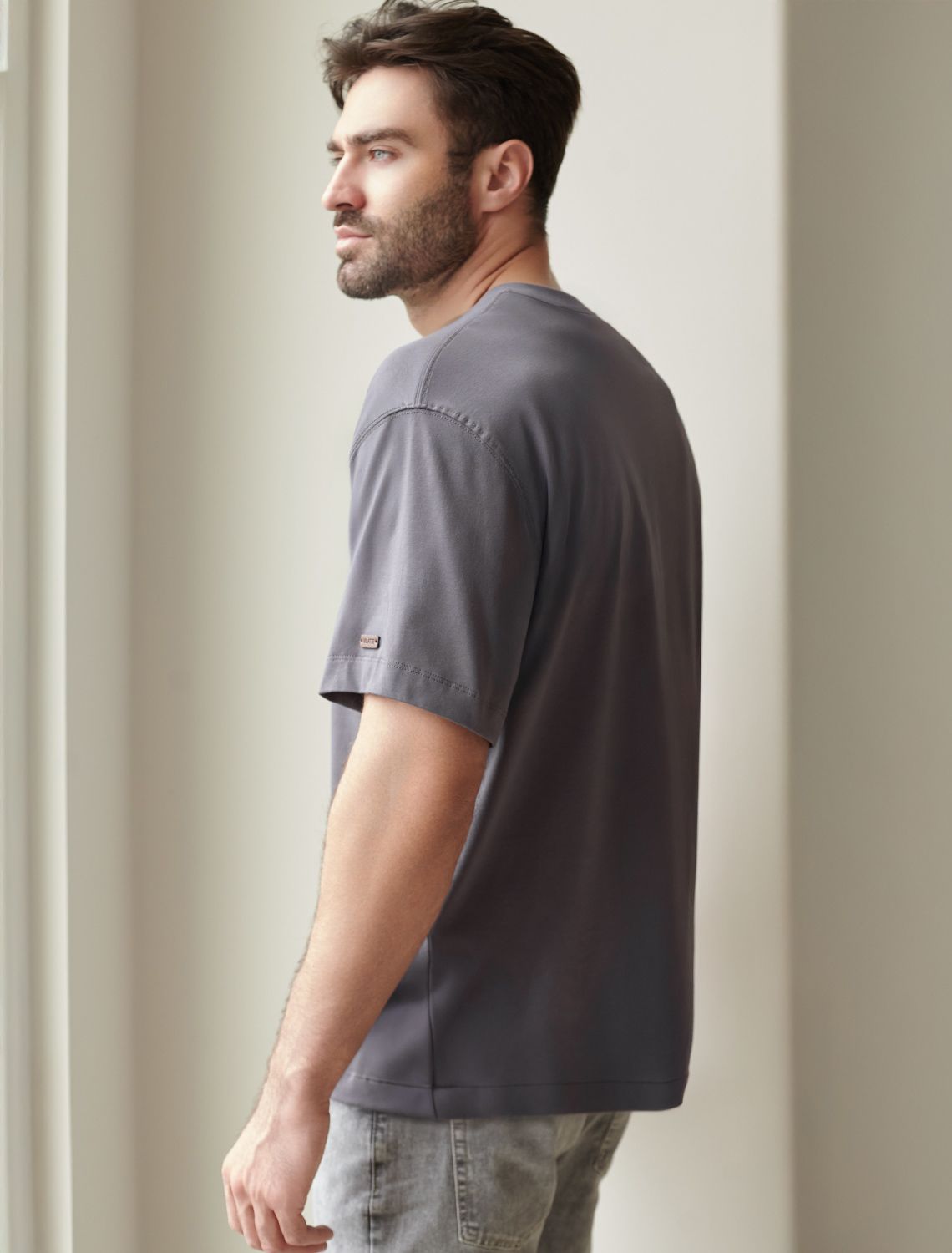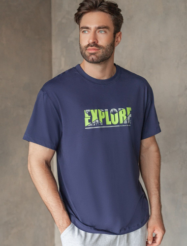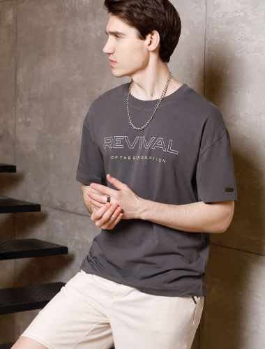 Свободная футболка с авторским принтом U49.048 серый_wave