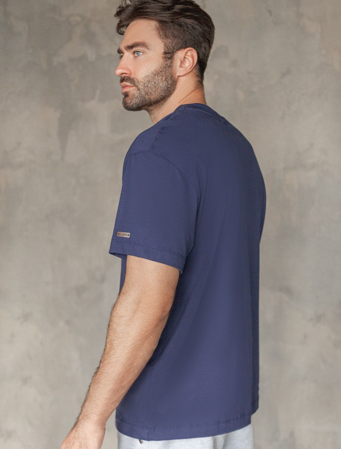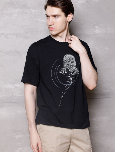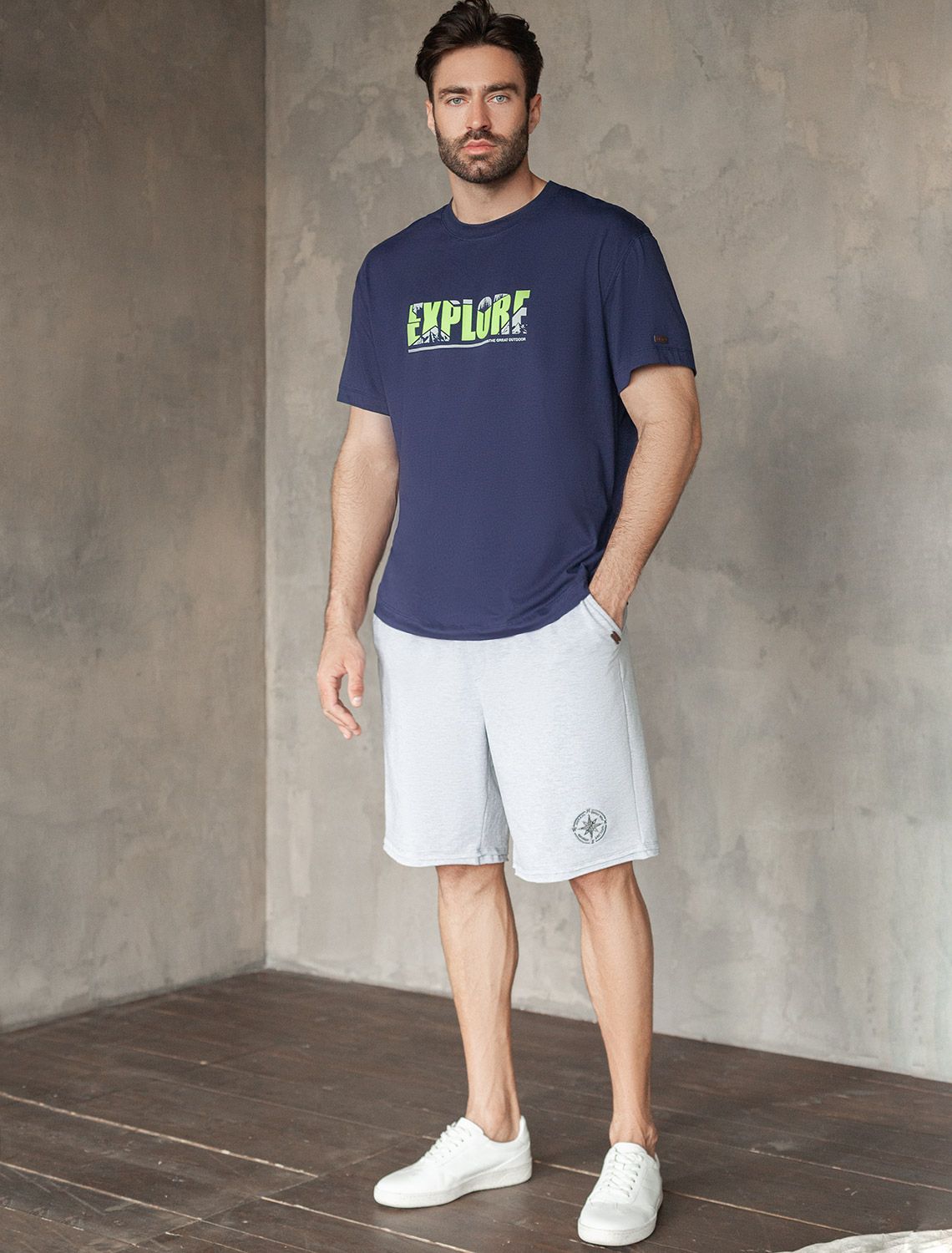 Свободная футболка с авторским принтом U49.048 т.синий_explore геометрия