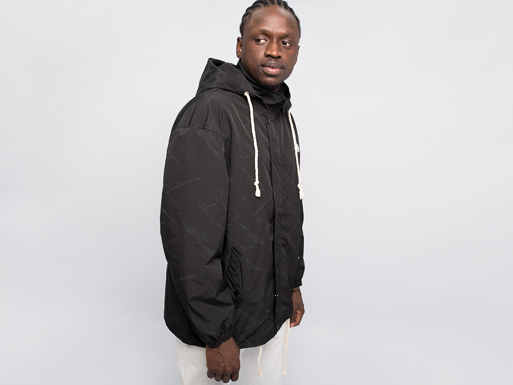 Высокий воротник и съемный, регулируемый капюшон хорошо укрывают