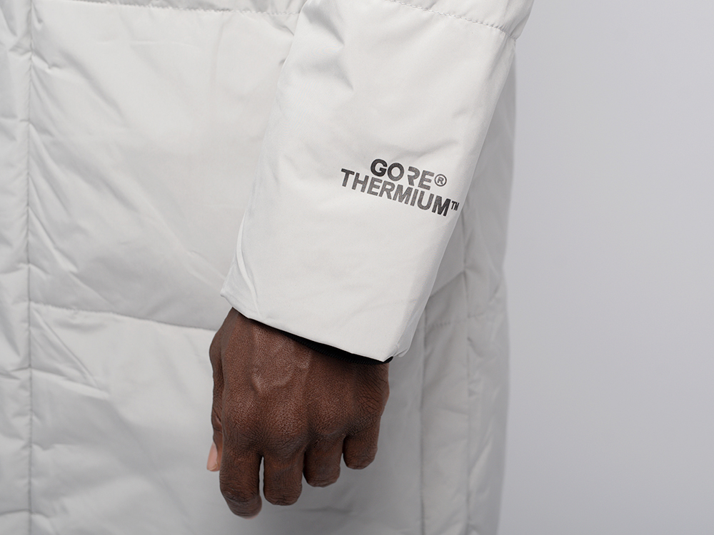 морозным воздухом. Внешний слой выполнен из полиэстера, утеплитель из пуха и пера.