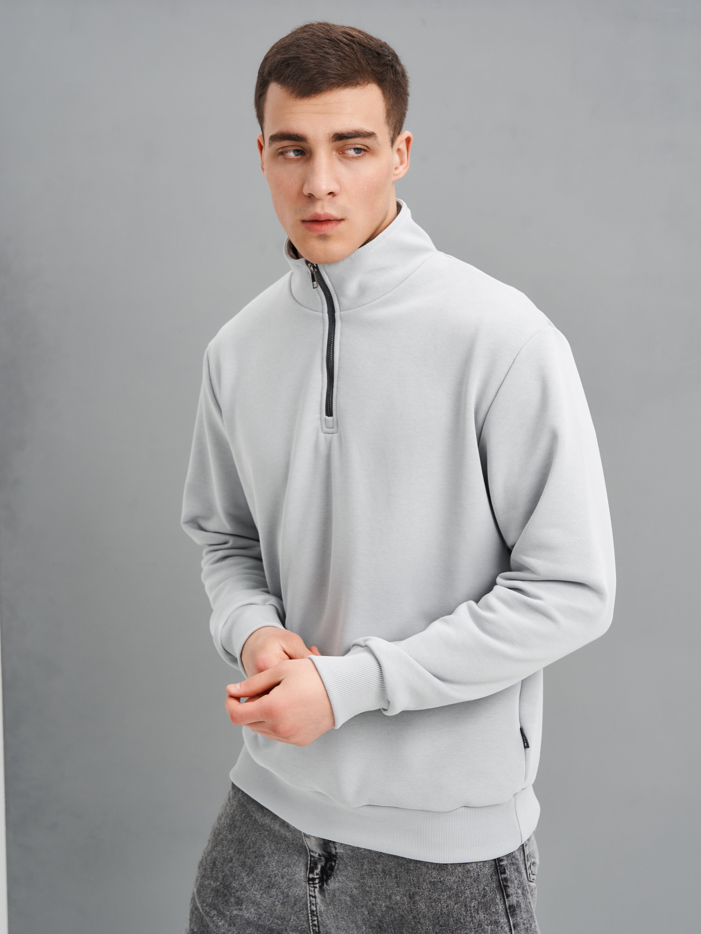 Мужская толстовка-поло. Толстовка с воротником-стойкой на молнии. Низ куртки и низ рукавов с поясом и манжетами из кашкорсе в цвет футера.