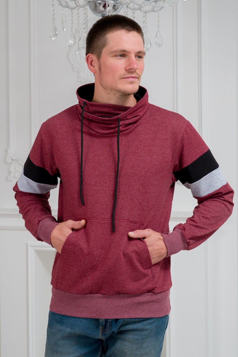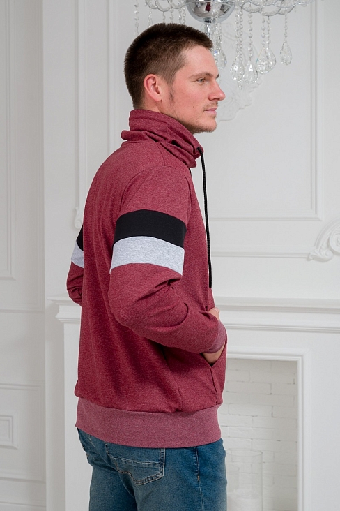 Толстовка мужская из футера Оскар бордо меланж из комбинированной ткани. Воротник-хомут, карман-кенгуру.