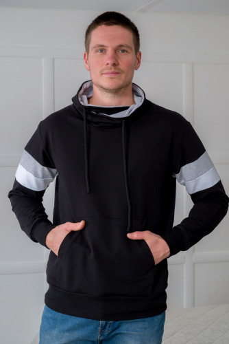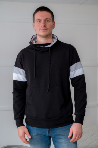 Толстовка мужская из футера Оскар черный макс из комбинированной ткани. Воротник-хомут, карман-кенгуру.