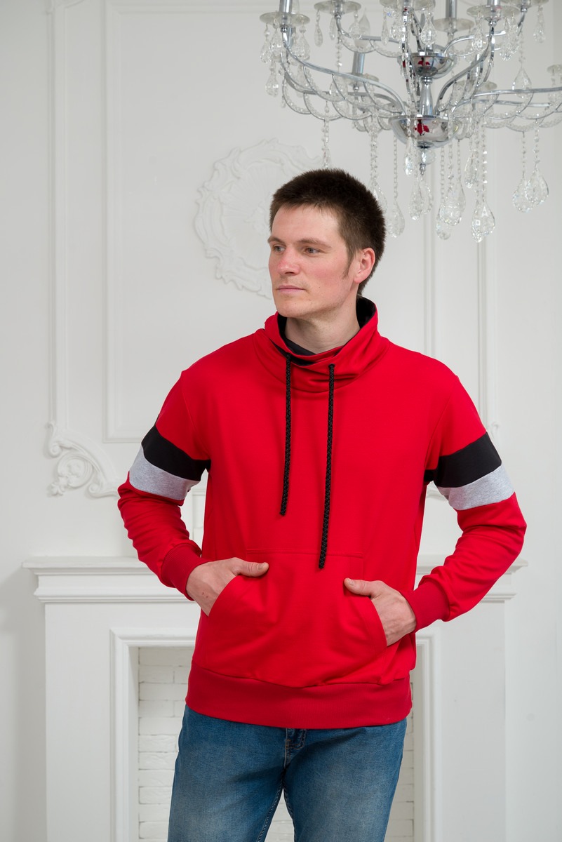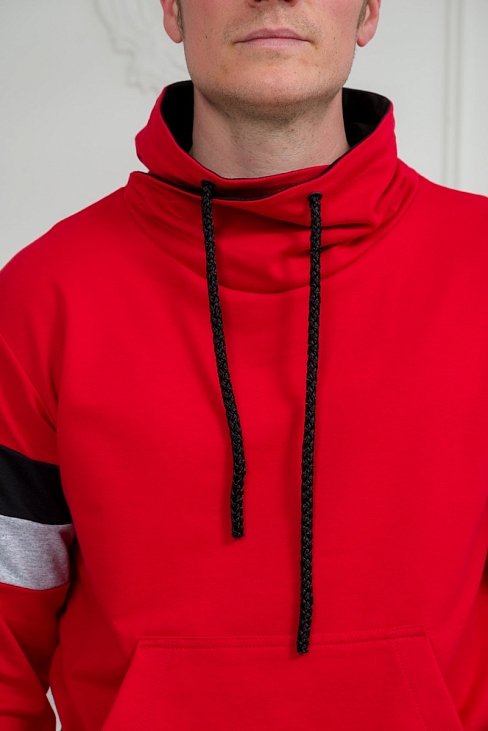 Толстовка мужская из футера Оскар красный макс из комбинированной ткани. Воротник-хомут, карман-кенгуру.