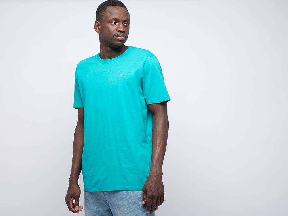 Мягкое трикотажное изделие с округлой горловиной и коротким рукавом подойдет на каждый день.