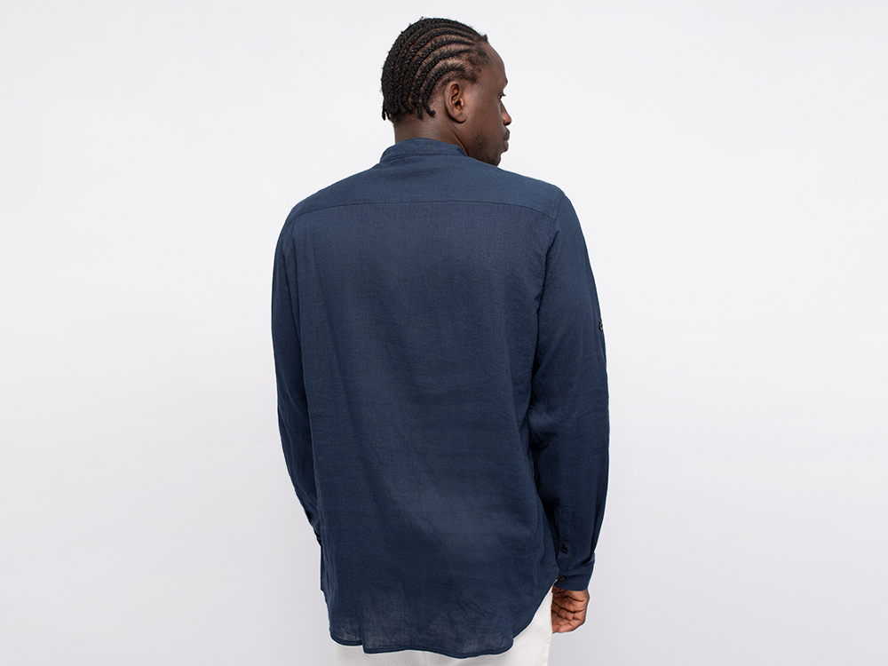 с застежкой на пуговицы, воротником – мандарин, длинным, подкатным рукавом.