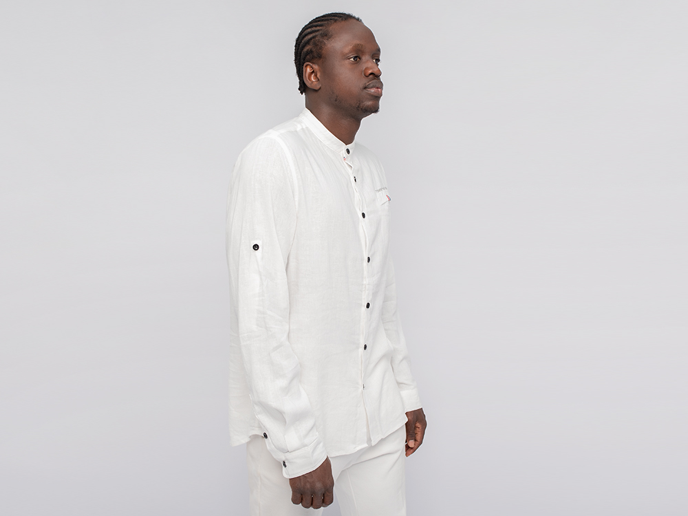 с застежкой на пуговицы, воротником – мандарин, длинным, подкатным рукавом