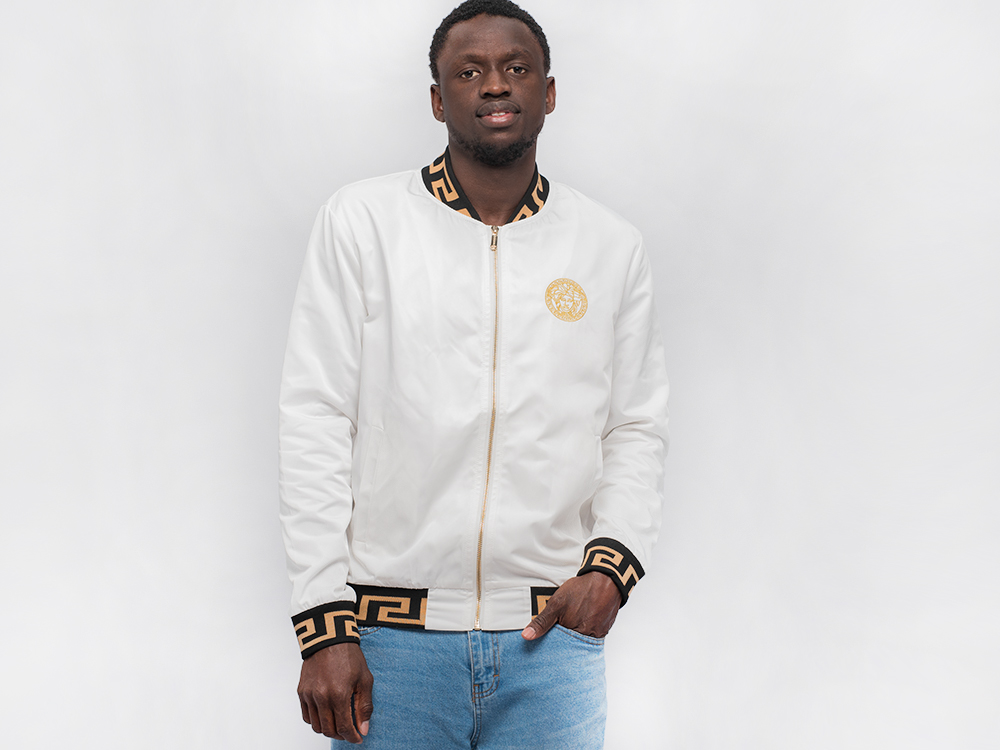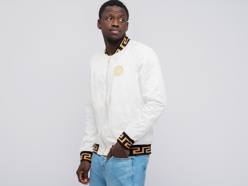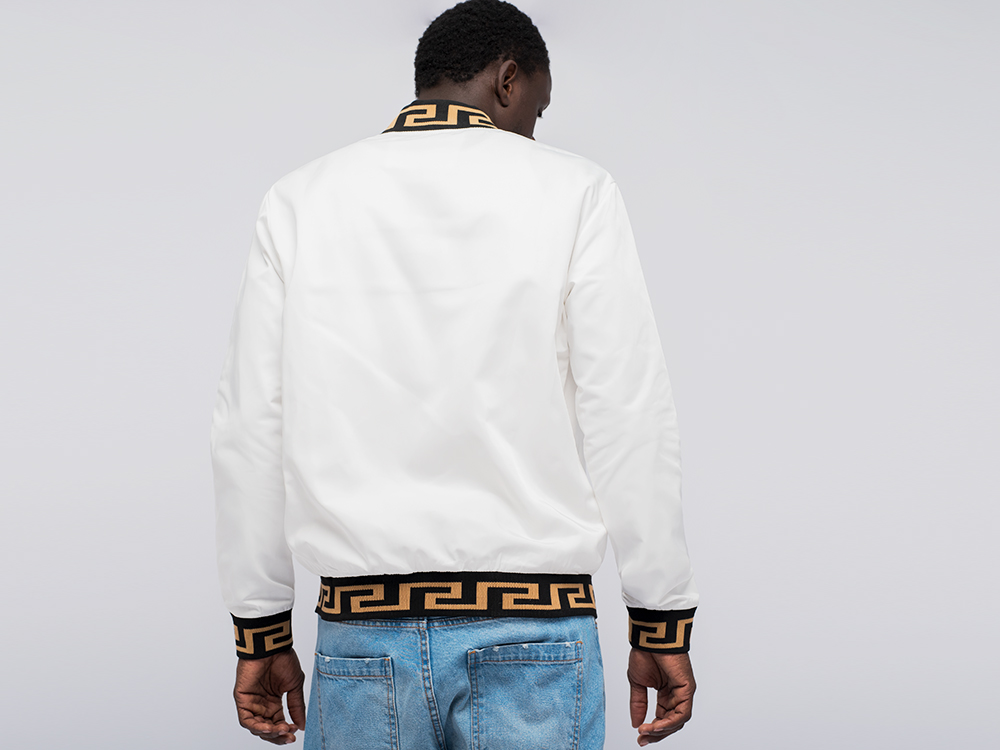 Бомбер Versace декорирован логотипом на груди, что подчеркивает стиль