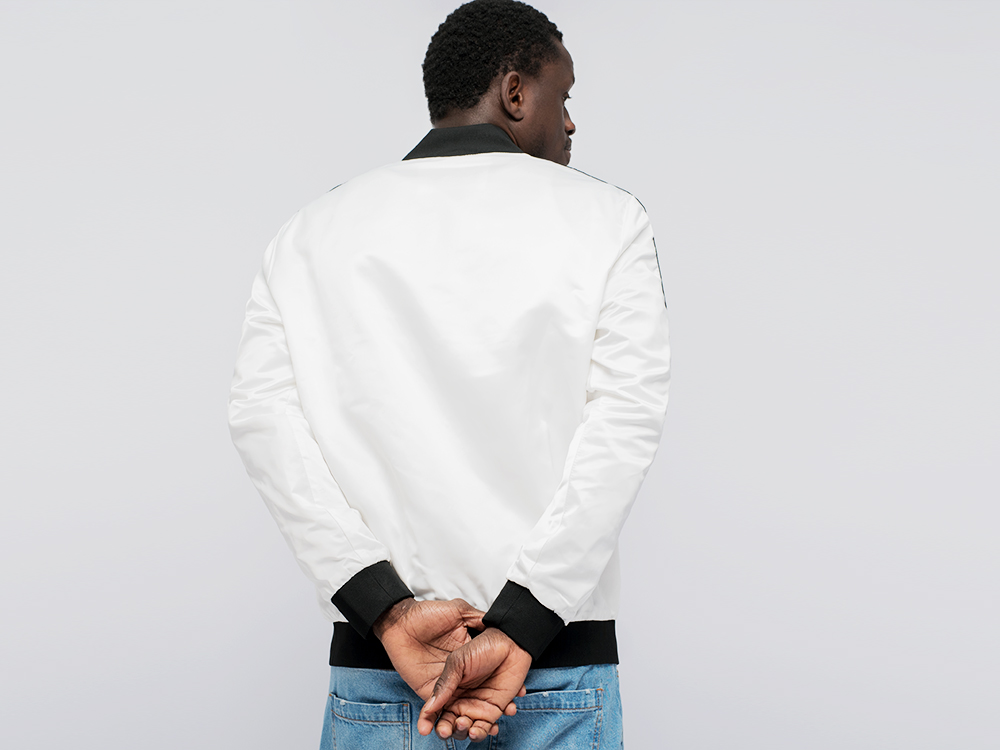 на рукавах, что подчеркивает стиль модели. Выполнен из полиэстера.