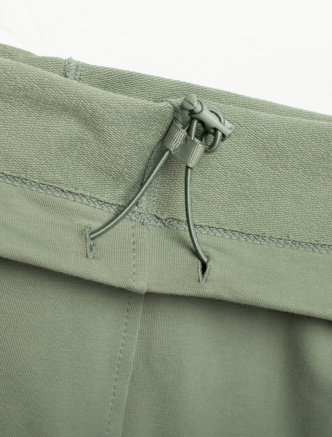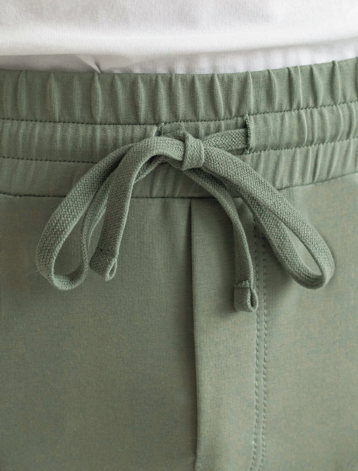 Свободные брюки светло-оливкого цвета с эластичным поясом на резинке и шнуром с металлическим наконечником изготовлены из премиального футера двухнитки. Натуральная ткань, в составе которой хлопок и эластан, отличается дышащими свойствами и мягкостью на ощупь, обеспечивает комфорт и удобство в повседневной носке. Трикотажные брюки сохраняют свой первоначальный вид после многочисленных стирок, что делает их практичными для активного использования. Повседневные брюки дополнены карманами по бокам и одим задним карманом на молнии, что позволяет удобно хранить необходимые мелочи. Внизу расположены затяжки на стопорах, тем самым можно регулировать посадку под индивидуальные предпочтения каждого мужчины.