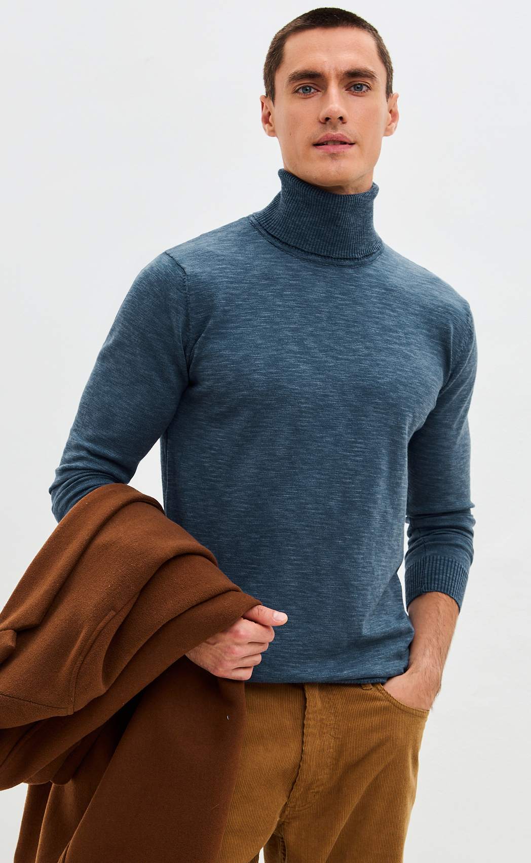 Водолазка мужская с горлом от бренда Fine Joyce темного-голубого цвета, из хлопкового полотна меланжевого оттенка. Узкий воротник-гольф и приятный к телу трикотаж создают максимальный комфорт и ощущение уюта. Модель комфортного прямого кроя из мягкого приятного на ощупь трикотажного полотна с антипиллинговым эффектом (не образуются катышки), не линяет, долгое время не теряет внешний вид. Стирать при температуре 30С. Водолазка для мужчин хлопковая, в наличии большие размеры. Водолазка оверсайз прямого кроя с высоким воротником, такая же теплая, как свитер или джемпер. Водолазки с воротником представлены в бежевом цвете, черном и и в нескольких цветах. Купить мужские водолазки оптом можно зарегестрировавшись на сайте. В карточке товара Вы найдете размерные характеристики, которые помогут Вам определиться с размером. Fine Joyce динамично развивающийся российский бренд. Fine Joyce — высокое качество по оптимальной цене!