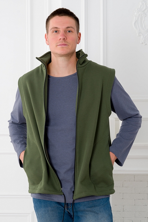 Жилет мужской (макси) из футера 3-х нитка / хаки