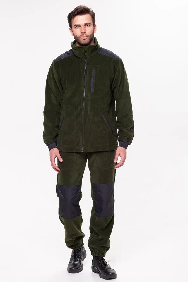 Брюки на круговом притачном поясе.На передних половинках обработаны два боковых кармана в листочку с молнией и настрочены наколенники для усиления.Детали из отделочной ткани: листочки, наколенники.>Состав ткани: 100%ПЭ Модель: Костюм флис с усилением Температурный режим: от -5 до +15 гр.С Назначение: Охота, рыбалка, туризм Сезон: Демисезон Тип: Костюм Цвет: Олива Нешуршащая: Да Ветрозащитная: Да Дышащая: Да