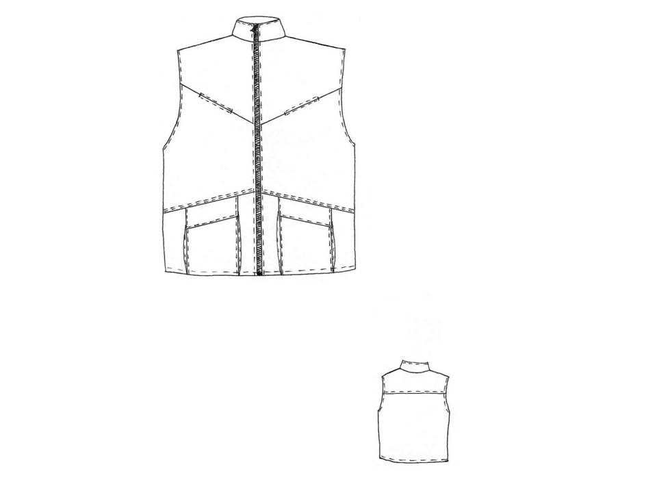 Жилет прямого силуэта, с воротником - стойкой, с центральной бортовой застёжкой на молнию.