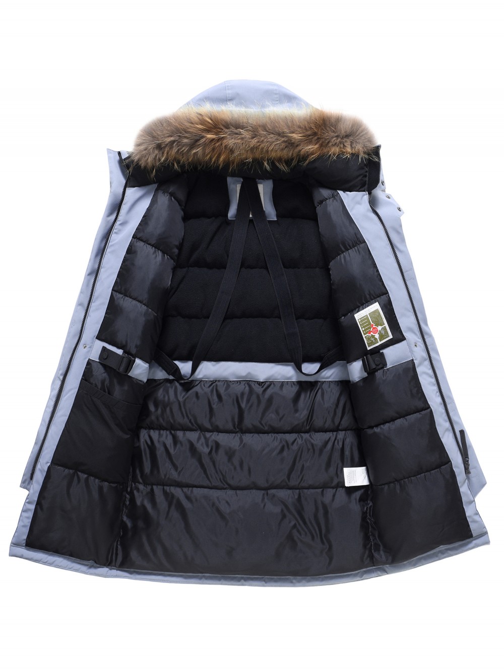 Внутренняя подкладка из овчины, полиэстера и флиса делает модель особенно тёплой и приятной в носке. Капюшон несъёмный, он плотно прилегает и защищает голову в непогоду, а роскошная опушка из натурального меха енота легко снимается благодаря молнии. Стояче-отложной воротник дополнительно прикрывает шею и создаёт ощущение уюта даже без шарфа.