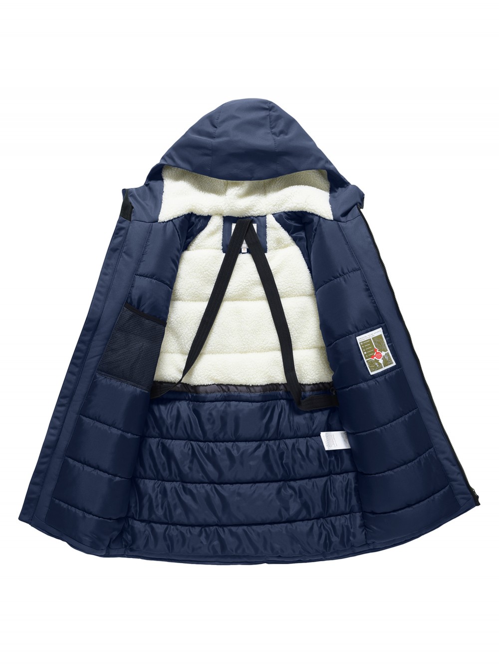 Внутренняя подкладка из овчины, полиэстера и флиса делает парку тёплой и уютной, несъёмный капюшон надёжно защищает от снега и ветра, а воротник-стойка прикрывает шею. Регулируемые фиксаторы на рукавах и капюшоне помогают удерживать тепло, трикотажные манжеты дополнительно блокируют холод. Вместительные карманы с начёсом на молнии и магнитах позволяют согревать руки и носить с собой необходимые вещи. Модель выполнена в универсальных цветах — сером, чёрном, хаки и тёмно-синем, легко сочетаясь с любым стилем одежды.