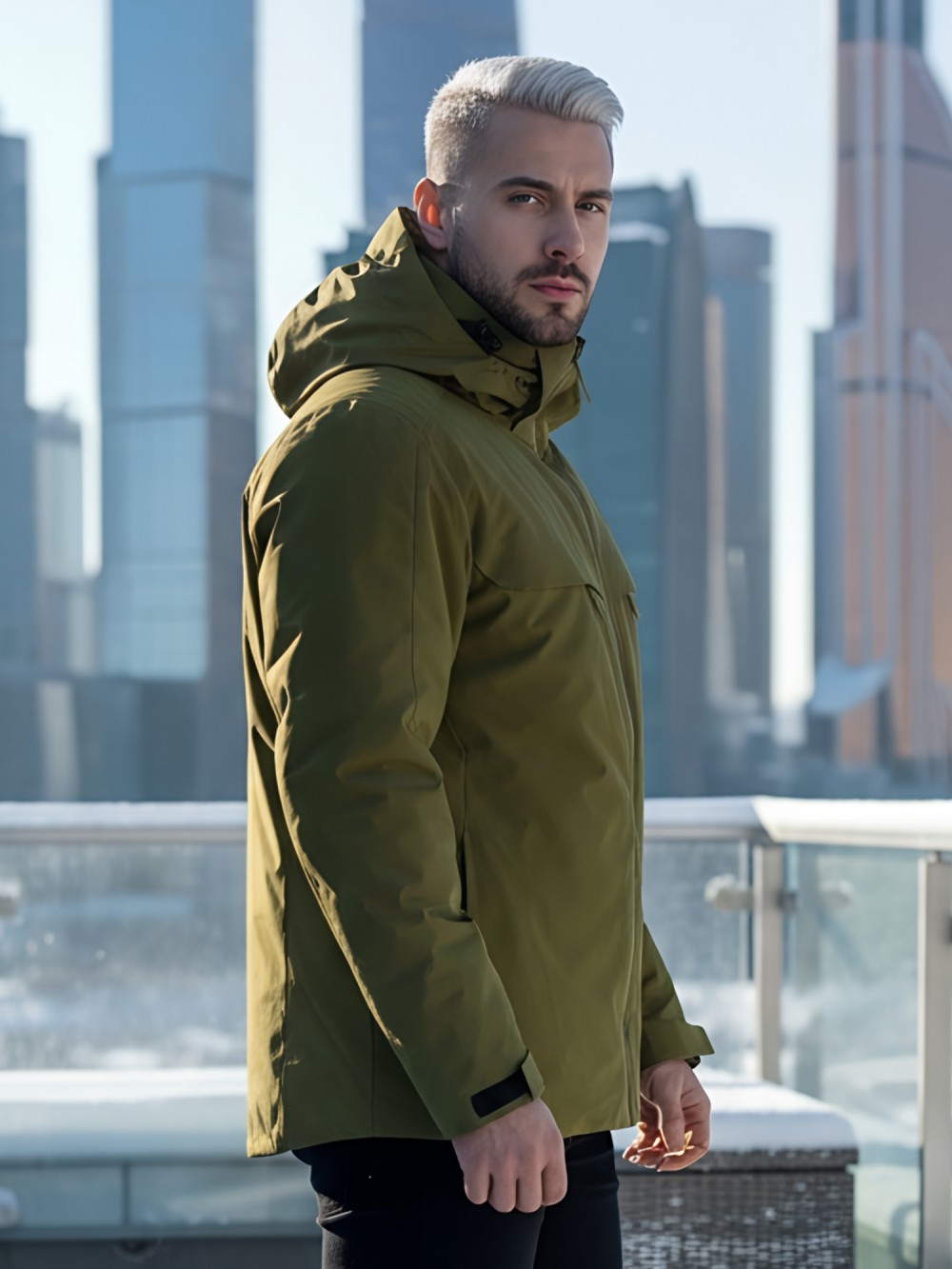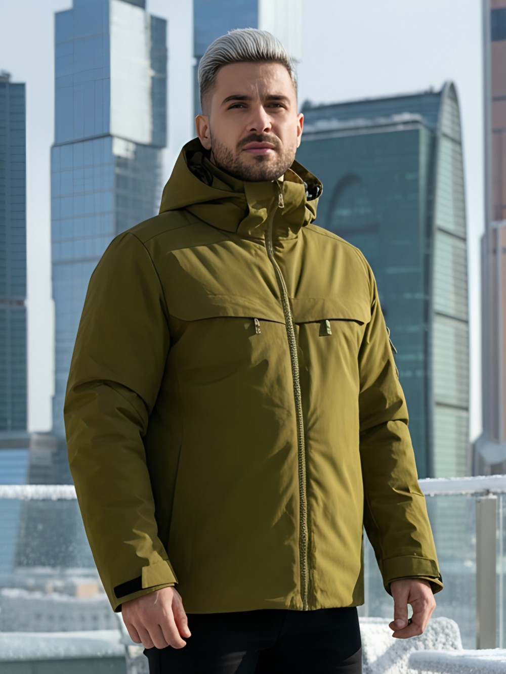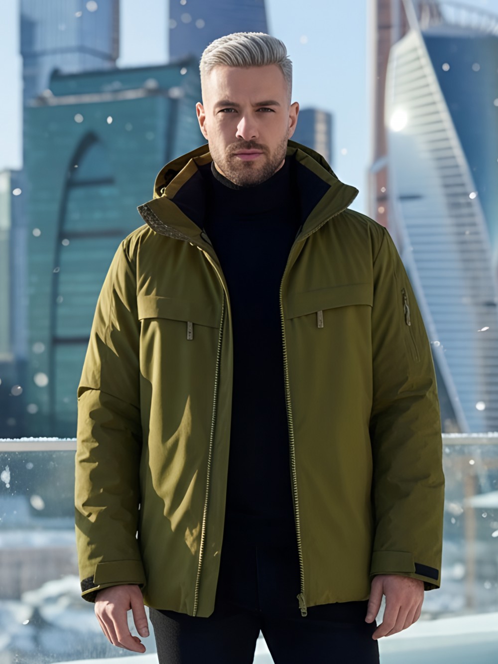 Плотная износостойкая ткань и продуманный утепляющий пакет работают как единая система защиты. Влагозащитные молнии YKK и аккуратно обработанные швы препятствуют промоканию, высокая горловина с мягким флисом бережно закрывает шею. Съёмный капюшон легко подстраивается по объёму, а манжеты и нижний край фиксируются так, чтобы внутрь не попадал снег.