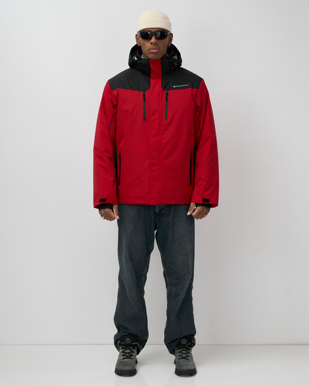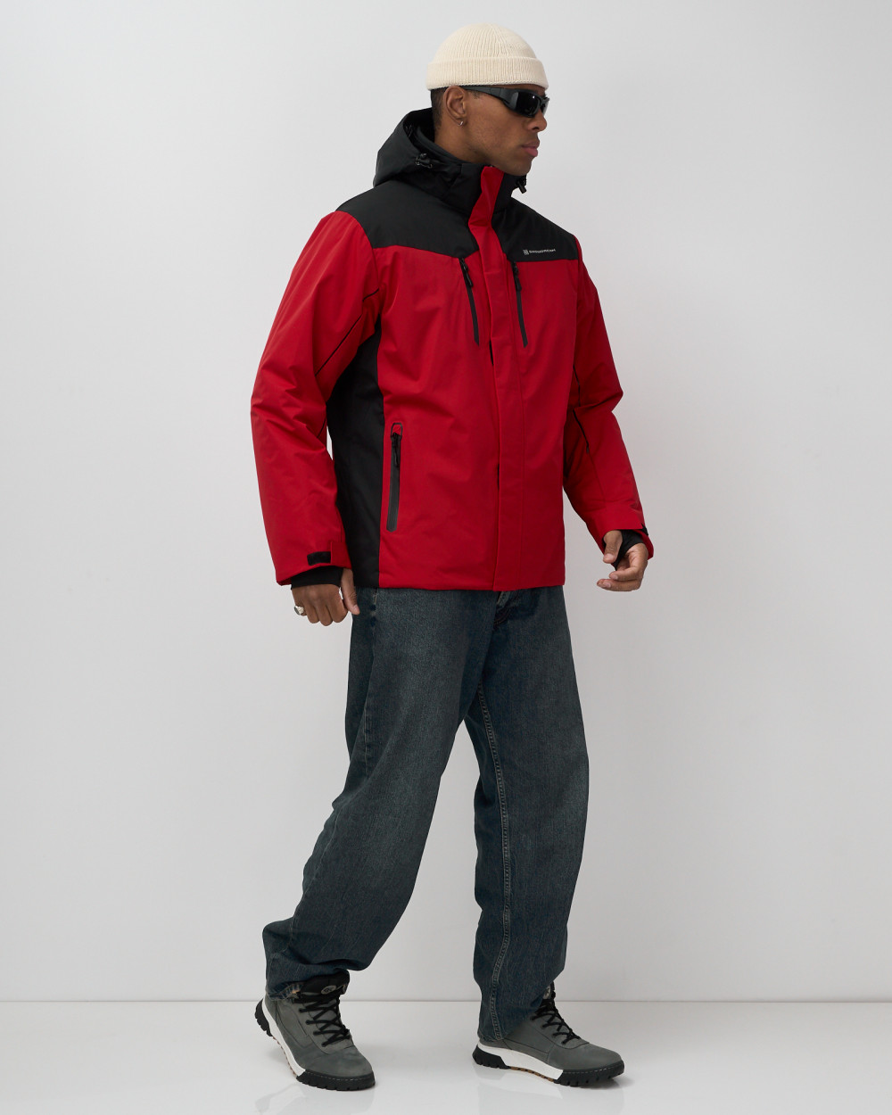 Горнолыжная куртка мужская зимняя красного цвета 7611Kr