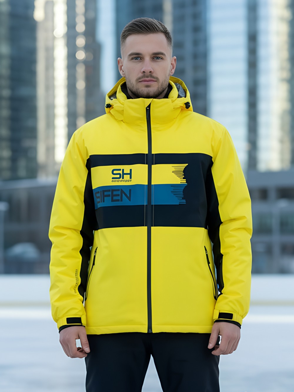 Мужской зимний горнолыжный костюм с надписями. Откройте для себя уникальный мужской горнолыжный костюм, созданный специально для тех, кто не представляет свою жизнь без зимних спортов и активного отдыха на свежем воздухе. Этот костюм был разработан с учетом всех потребностей горнолыжников, обеспечивая не только отличную защиту от холода и ветра, но и стильный внешний вид. Куртка:
