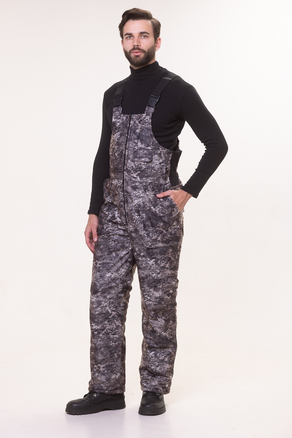 - утепляющий материал: куртка синтепон - 300г/м2, п/к синтепон - 200г/м2       Куртка  прямого силуэта, с воротником стойкой, с центральной бортовой застёжкой на молнию, с ветрозащитным клапаном, застёгивающимся на текстильную застёжку" контакт".Куртка со съёмным утеплённым капюшоном, стягивающийся шнуром по лицевому срезу, с кулисой  по линии талии. Спинка цельнокроёная.Рукава втачные из двух частей на подкладке с трикотажным напульсником.На подкладке полочки обработаны накладные карманы из основной ткани, застёгивающиеся на текстильную тесьму "контакт".   Полукомбинезон с отрезной нагрудной частью,  центральной застёжкой на молнию.На передних половинках обработаны два объёмных накладных боковых кармана, на нагрудной части  накладной карман с клапаном.Задняя часть полукомбинезона в бласти талии собрана на эластичную тесьму. На задней нагрудной части полукомбинезона расположены помочные резинки, пристёгивающиеся на замки-трезубцы.В области боковых швов вшита трикотажная вставка для регулирования объёма.