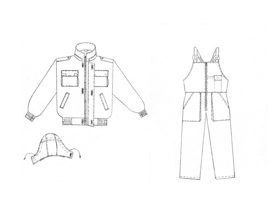 Куртка укороченная, с воротником - стойкой на флисе, с центральной бортовой застёжкой на молнию(тр. 8/2), с ветрозащитным клапаном, застёгивающимся на текстильную тесьму "контакт". Куртка со съёмным капюшоном, по лицевому вырезу  стягивающимся шнуром. Подкладка флис.На полочках обработаны два нижних прорезных кармана с листочкой и два верхних накладных  кармана – книжки  с клапанами, застёгивающимися на текстильную тесьму  "контакт".Спинка цельнокроёная. Рукава втачные из двух частей, с манжетами, притаченными по низу, собранными на эластичную тесьму .Куртка на притачном поясе, собранном на две эластичные ленты.