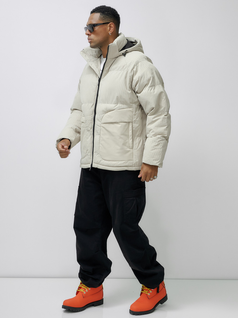 Куртка молодежная мужская зимняя с капюшоном бежевого цвета 25307B