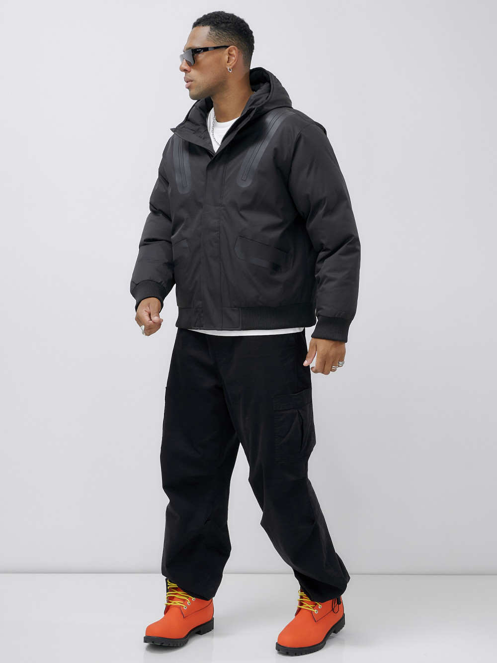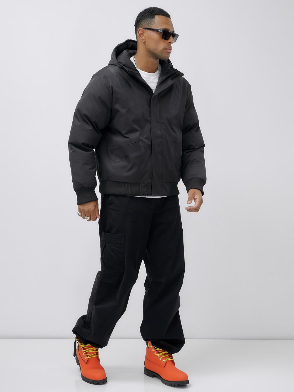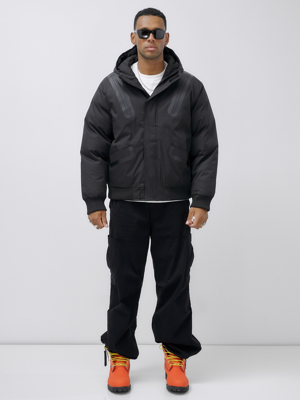 Куртка молодежная мужская зимняя с капюшоном черного цвета 25355Ch